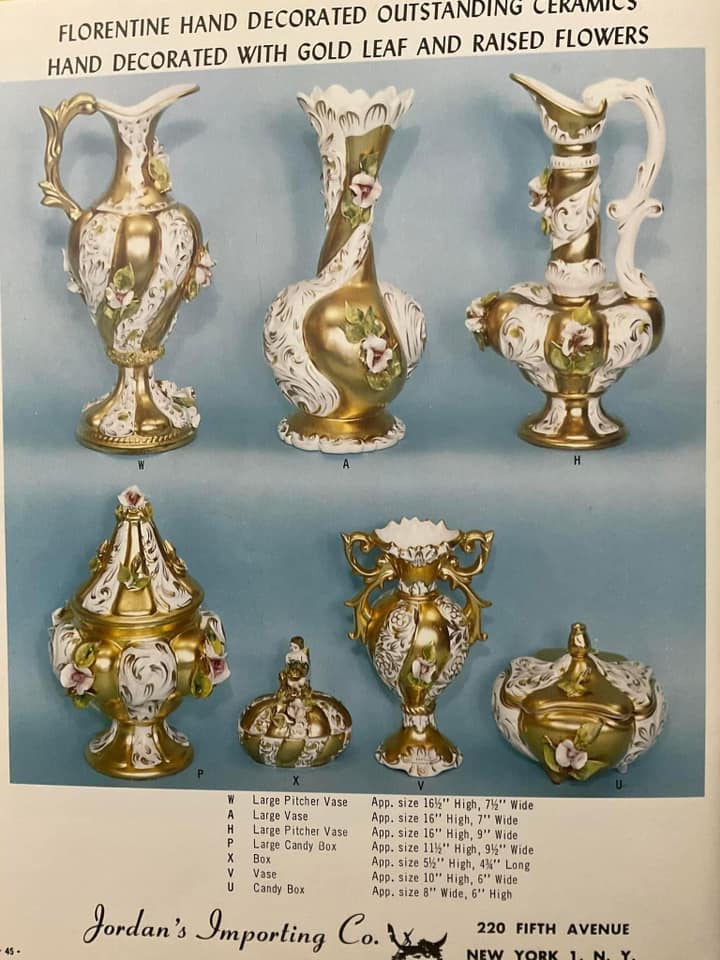 Shown below are catalogue pages from a Jordan's Importing Company (also known as J.I. Co. or JICO) Murano glass catalogue. The exact date of the catalogue is not known, but it is known that JICO was an American based import company, that imported Italian Murano and Florentine glass to the USA between the mid 1950's - early 1970's. The front cover of this catalogue has the company address, including a zip code, and as zip codes were only introduced in 1963, this catalogue must date somewhere between 1963 - early 1970's.