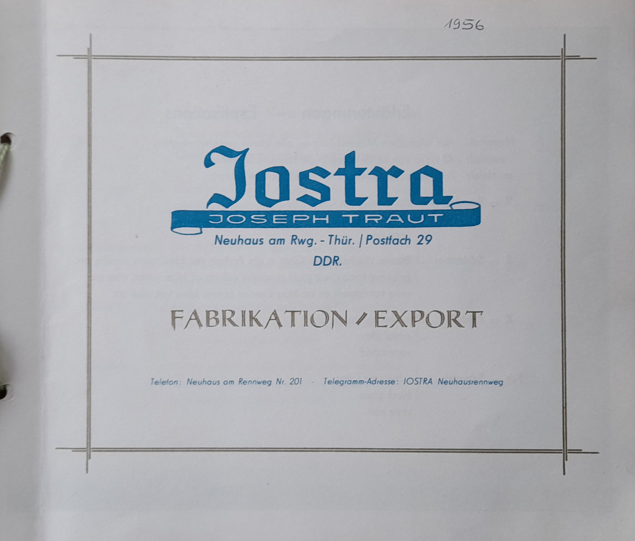 Shown below are pages from a Jostra (Joseph Traut) German glass catalogue, thought to be from 1956. Sourced from and dated by the museum in Neuhaus am Rennweg, where Joseph's son Horst worked, so the date is presumed to be accurate. The catalogue also contains a flyer insert for a Leipziger trade fair. The date on the flyer is obscured, but looks to be from the 1960's.