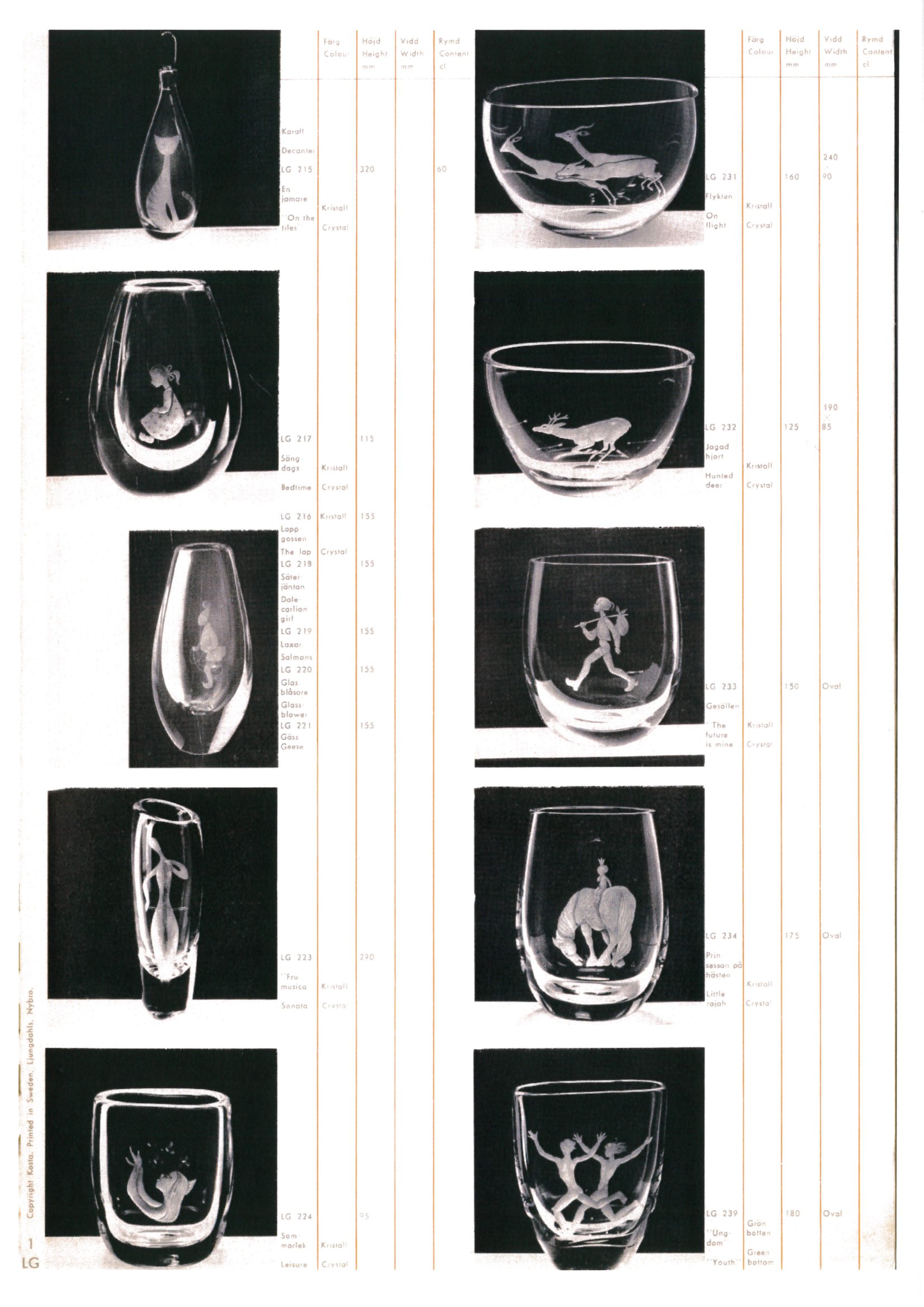 Shown below are catalogue pages from a 1960 Kosta Swedish glass catalogue.
