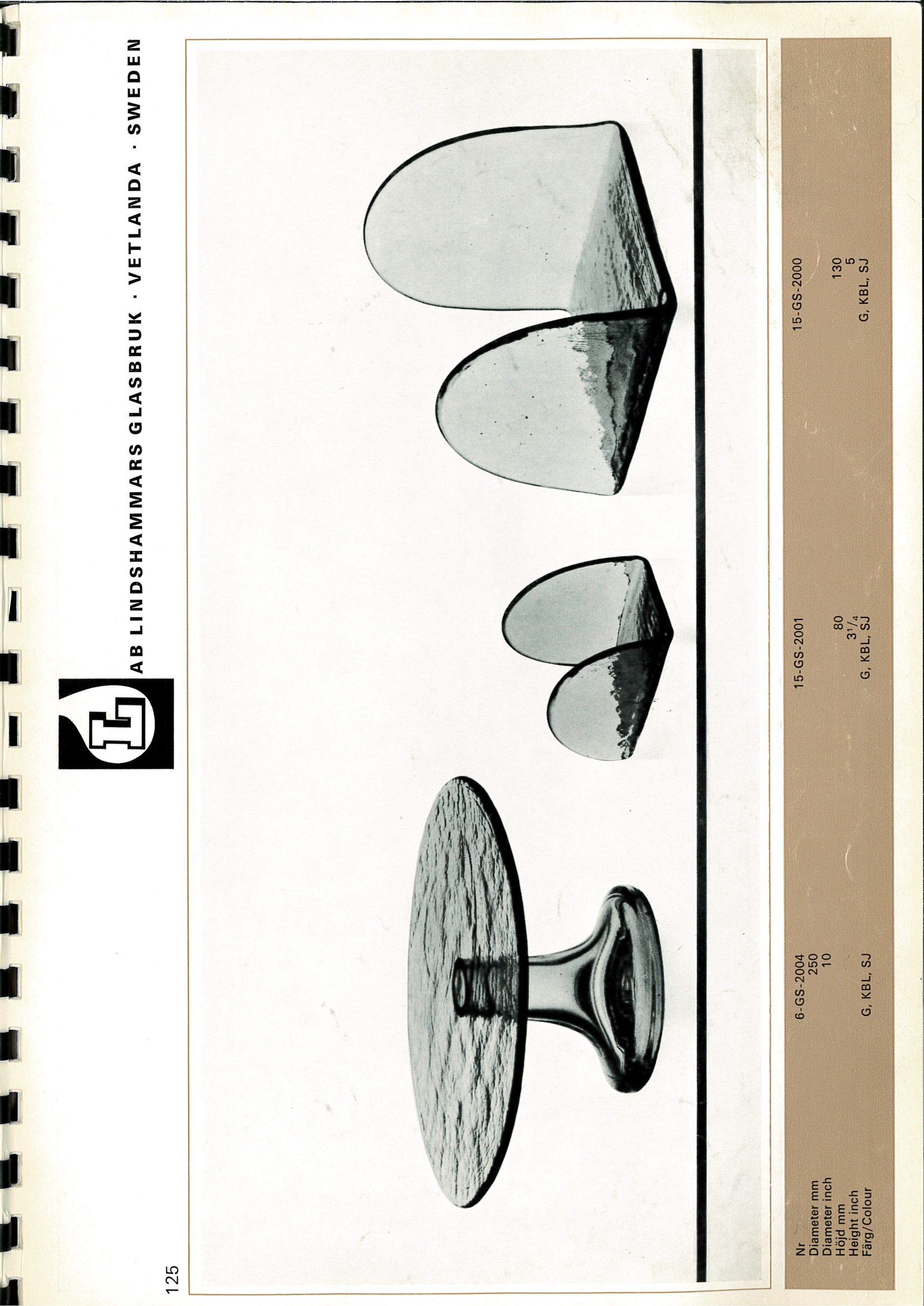 Shown below are pages from a 1968 Lindshammar Swedish glass catalogue.