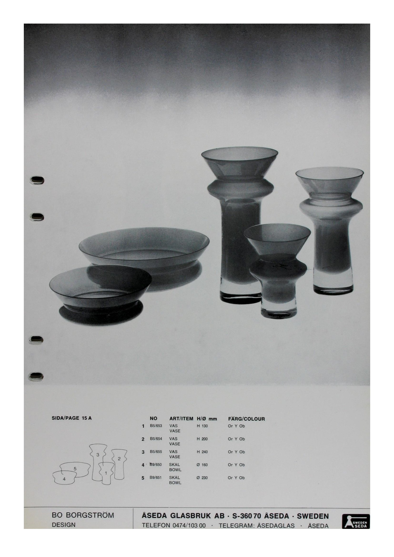 Shown below are pages from an Aseda Glasbruk Swedish glass catalogue from 1971-73.