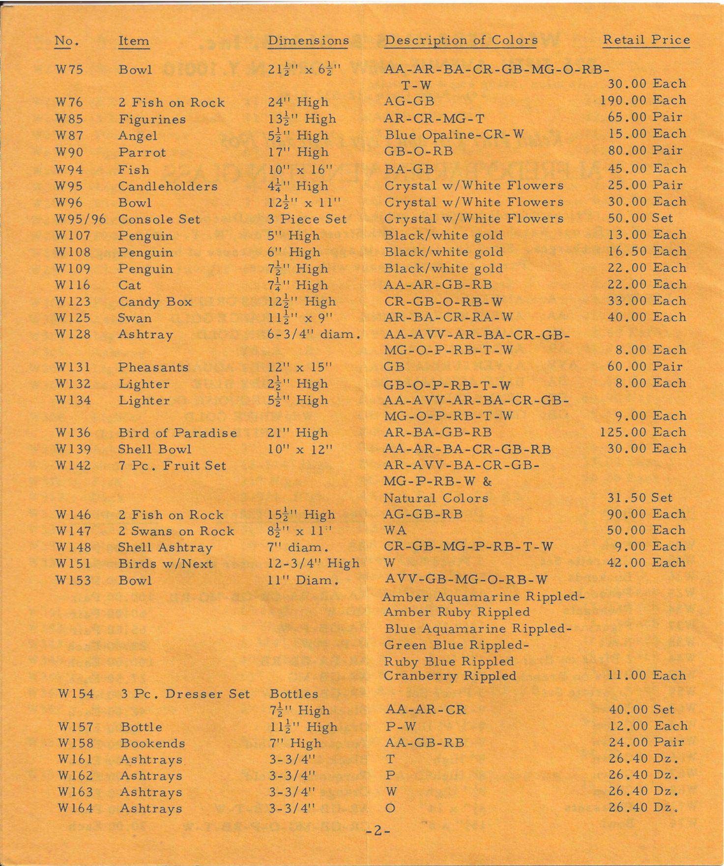 Shown below are pages from a 1965 Barbini Murano glass catalogue for Weil Ceramics & Glass Inc.