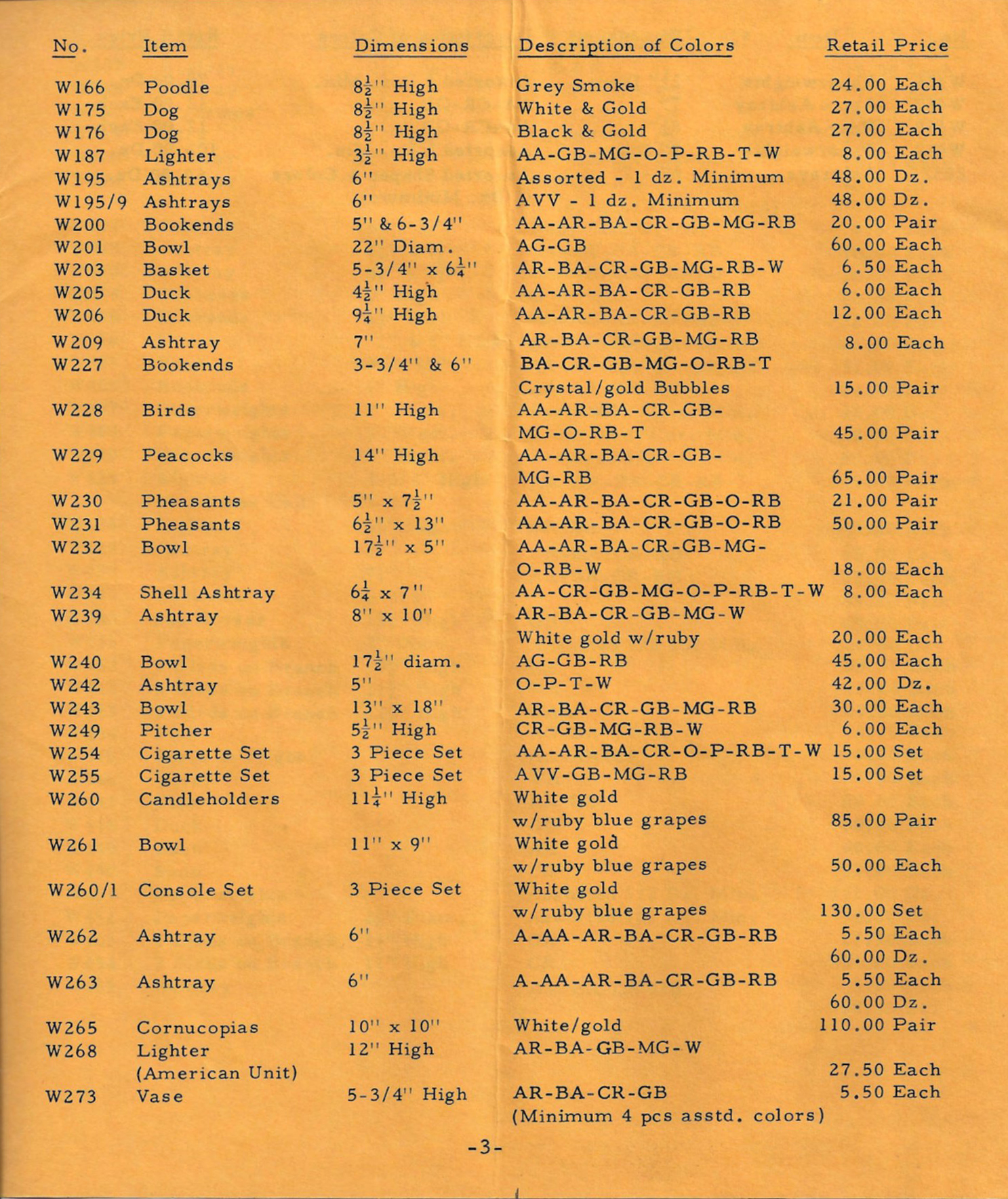Shown below are pages from a 1965 Barbini Murano glass catalogue for Weil Ceramics & Glass Inc.