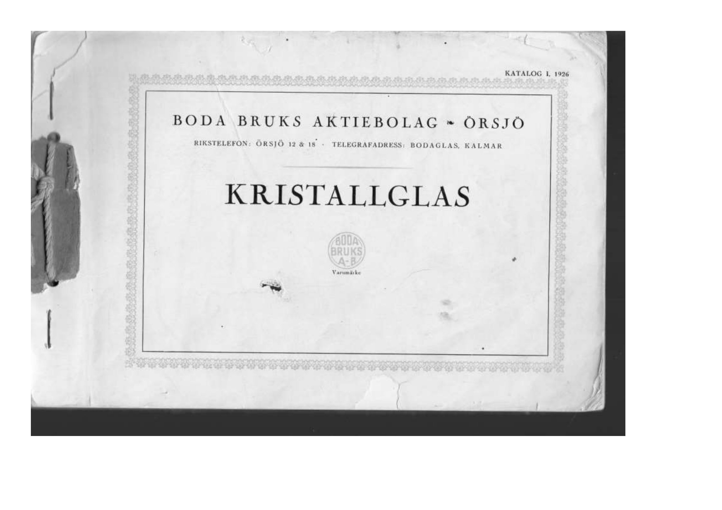 Boda 1926 Swedish Glass Catalogue - Front Cover