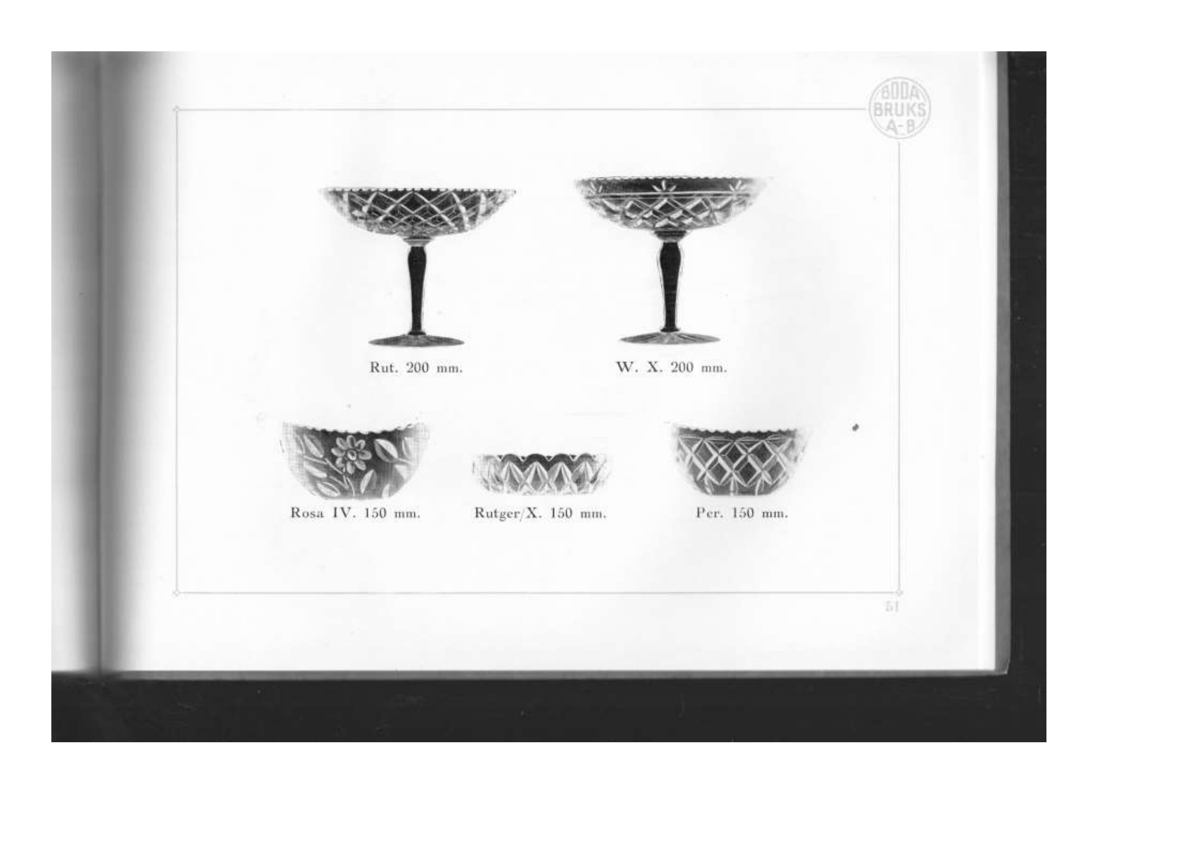Shown below are catalogue pages from a 1928 Boda Swedish glass catalogue.