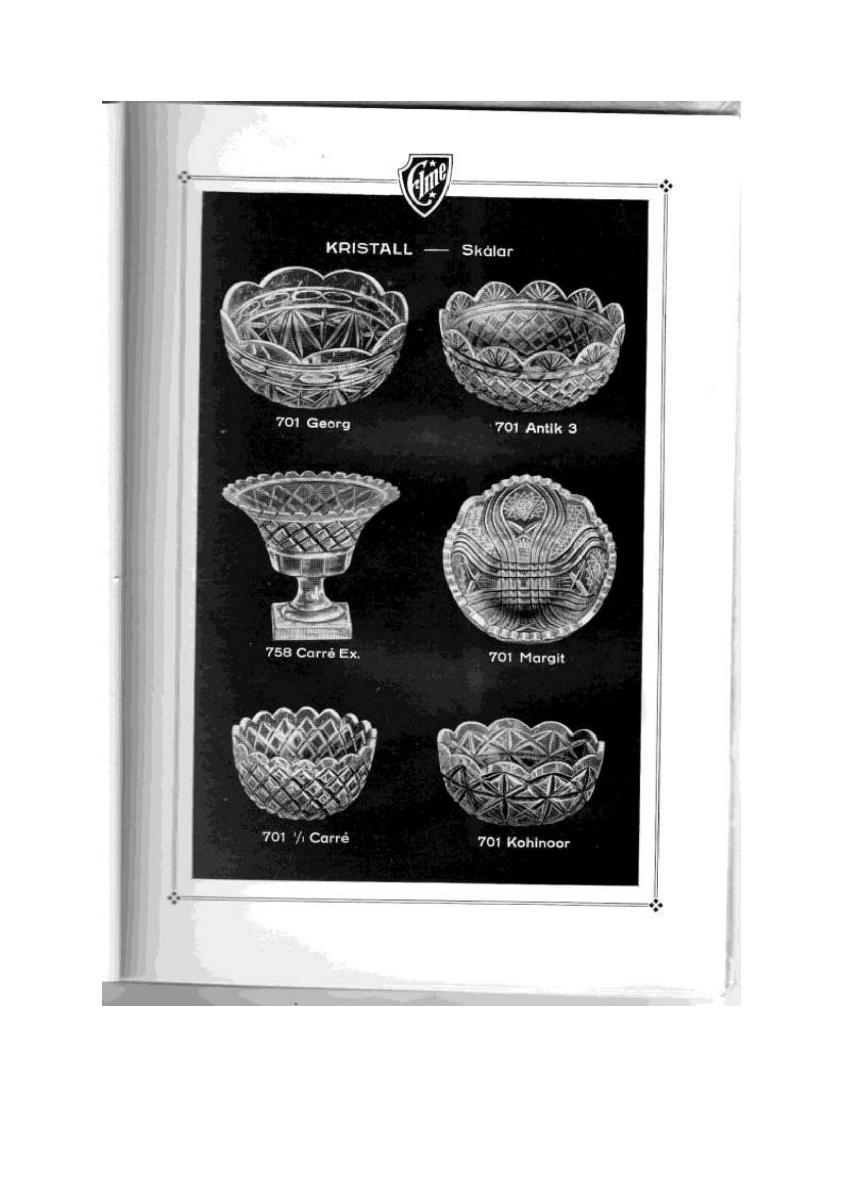 Shown below are catalogue pages from an Elme Glasbruk Swedish glass catalogue from 1926.
