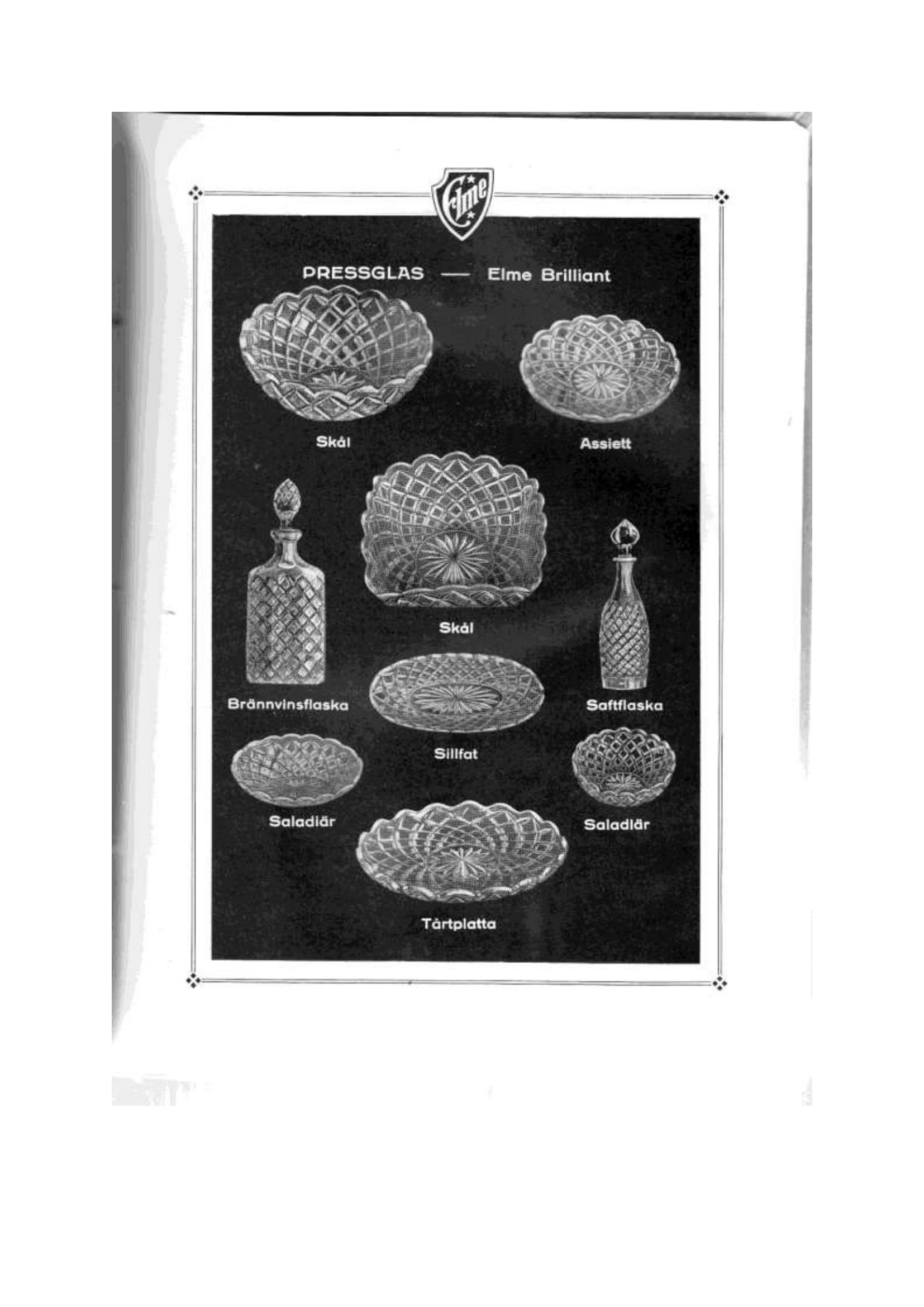 Shown below are catalogue pages from an Elme Glasbruk Swedish glass catalogue from 1926.