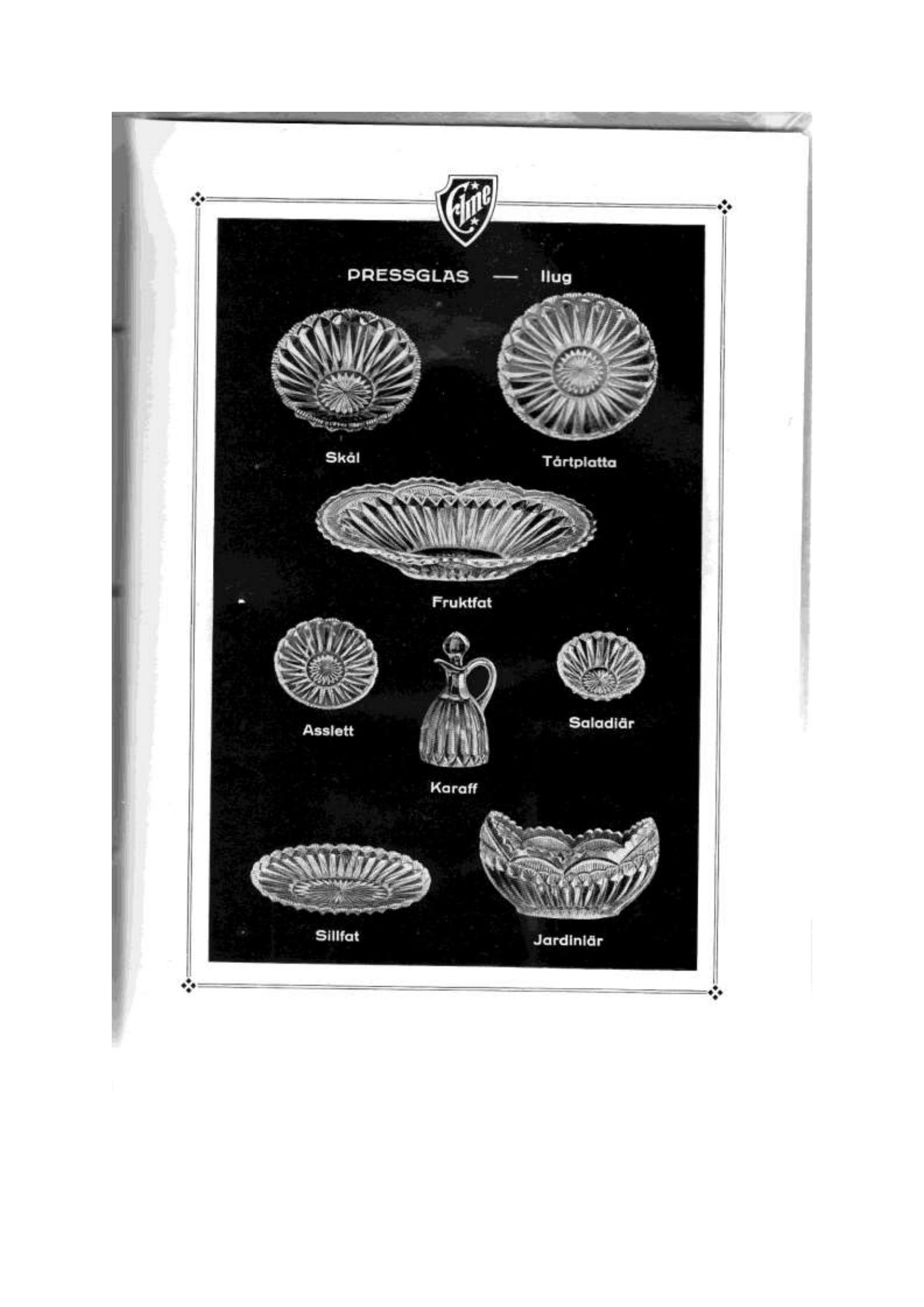 Shown below are catalogue pages from an Elme Glasbruk Swedish glass catalogue from 1926.
