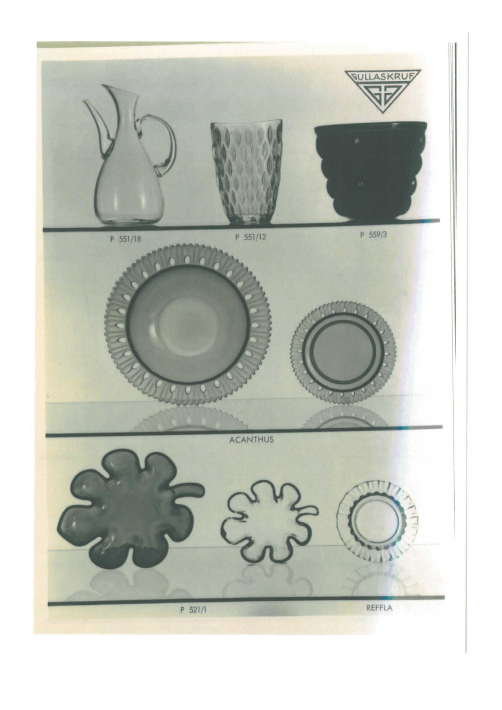Shown below are catalogue pages from a Gullaskruf Swedish glass catalogue, most likely from 1959.