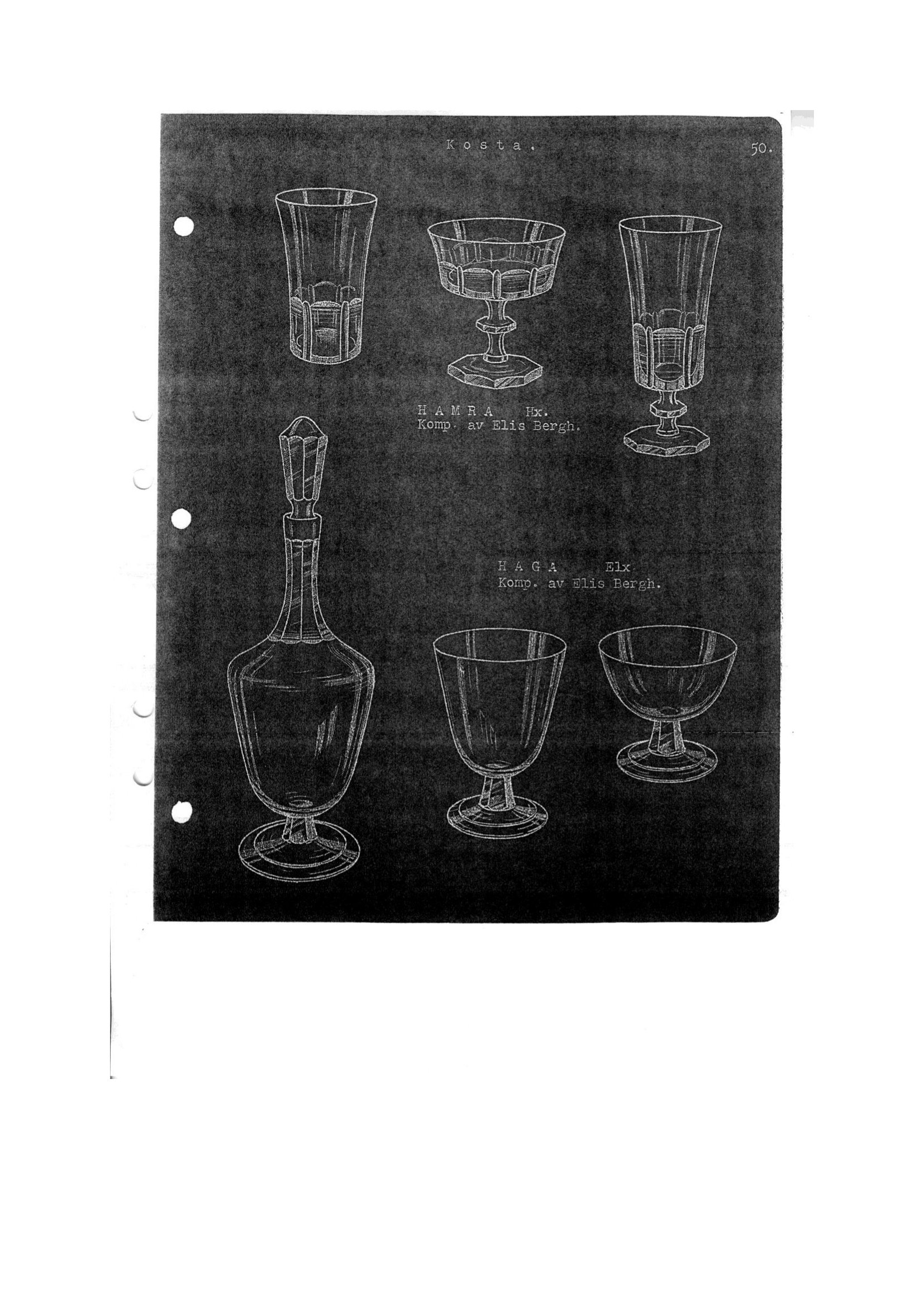 Shown below are catalogue pages from a 1940 Kosta Swedish glass catalogue.