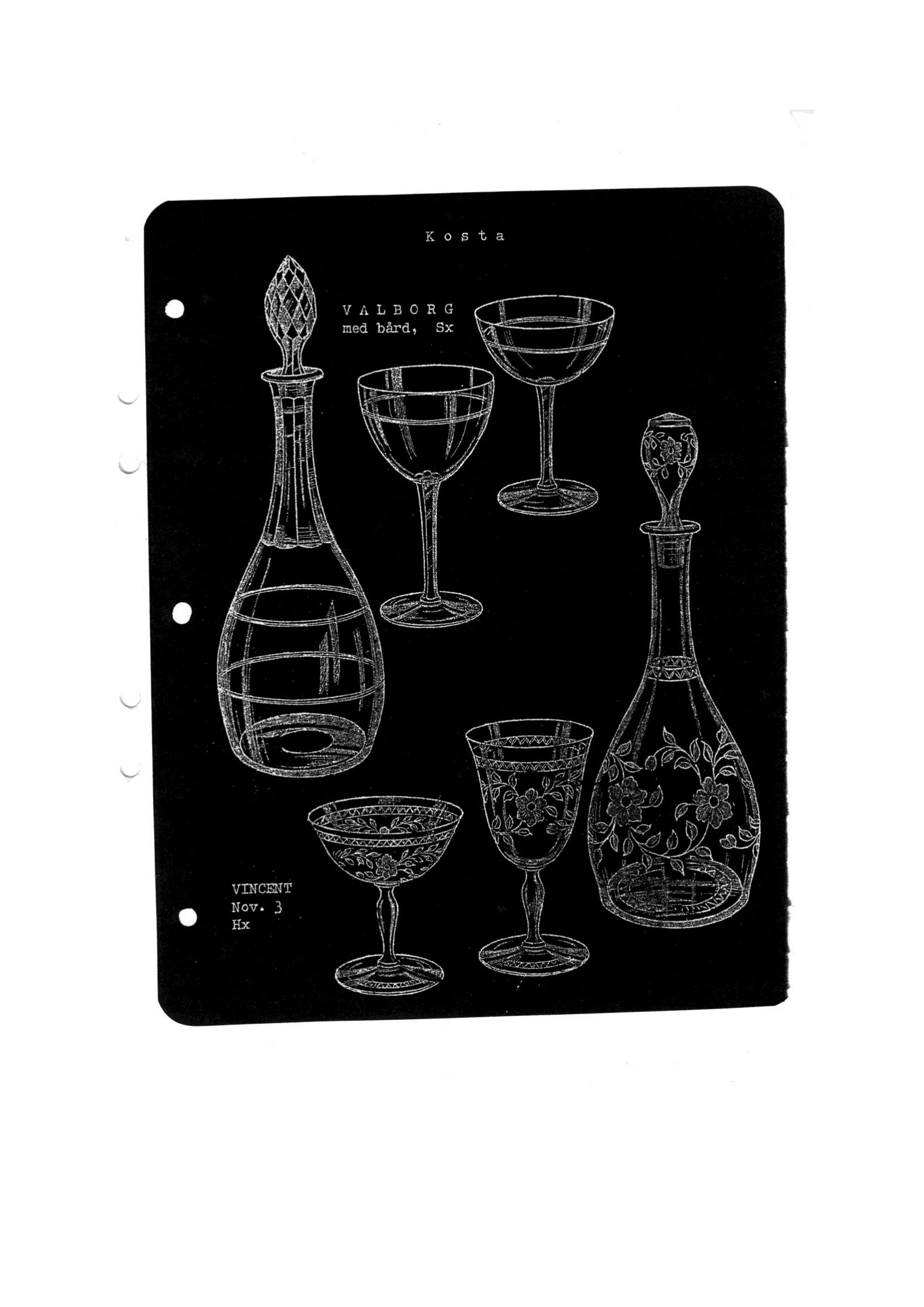 Shown below are catalogue pages from a 1944 Kosta Swedish glass catalogue.