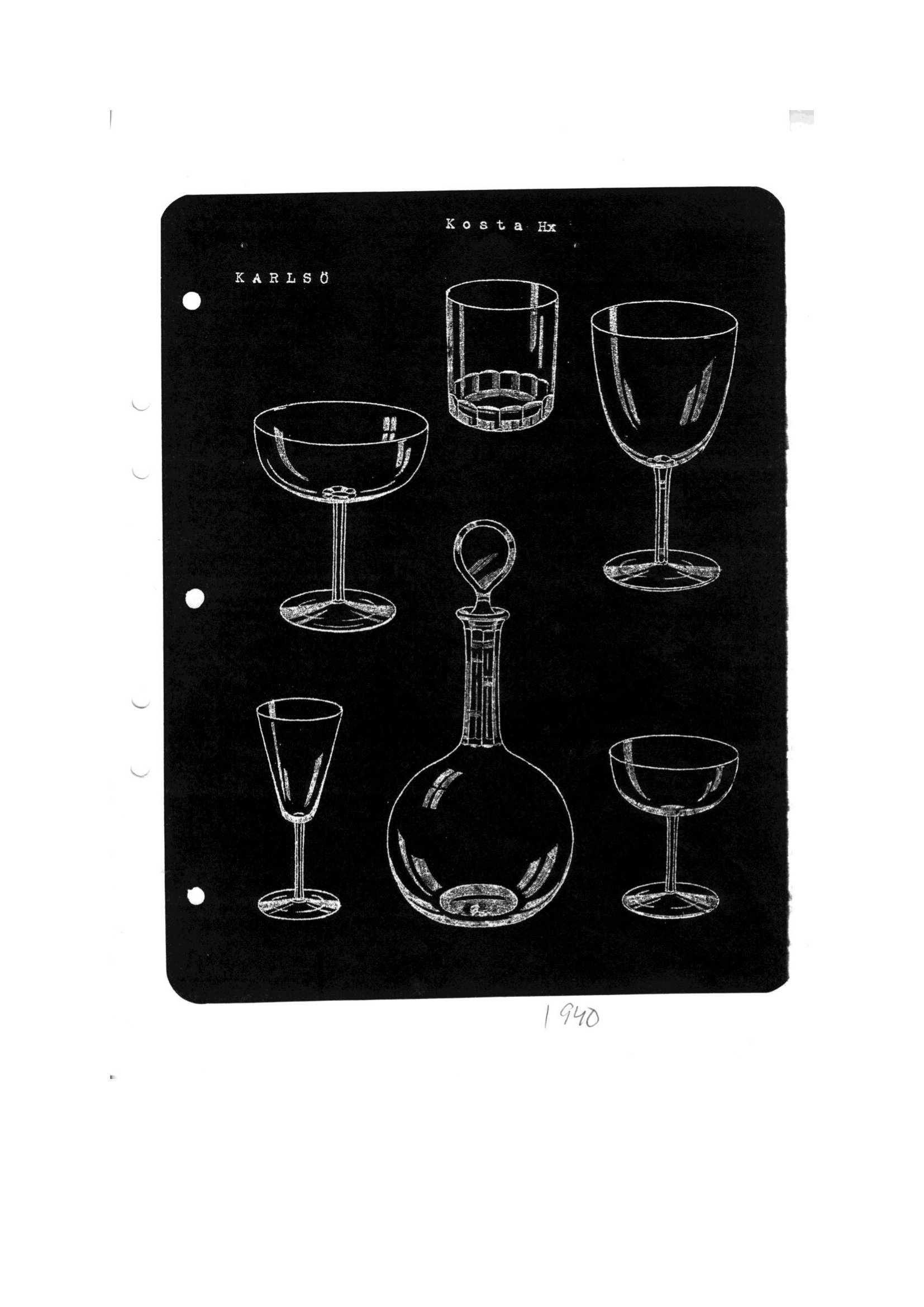Shown below are catalogue pages from a 1944 Kosta Swedish glass catalogue.