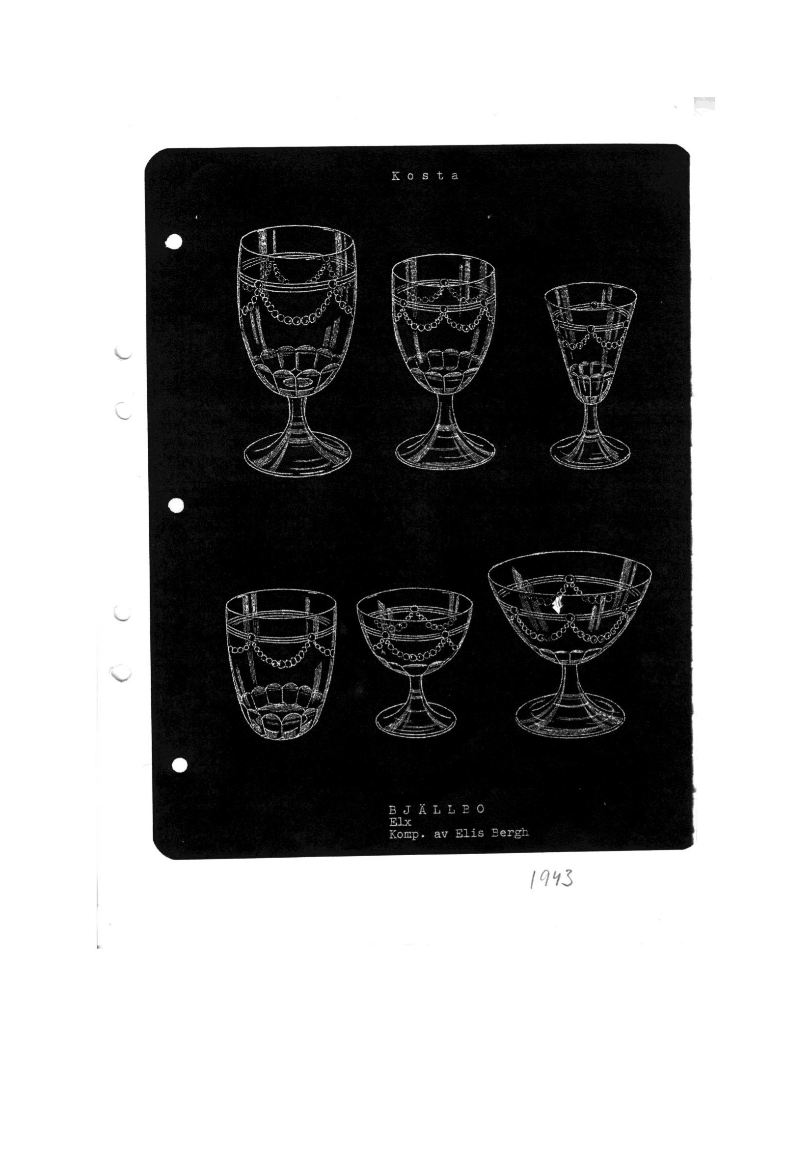 Shown below are catalogue pages from a 1944 Kosta Swedish glass catalogue.