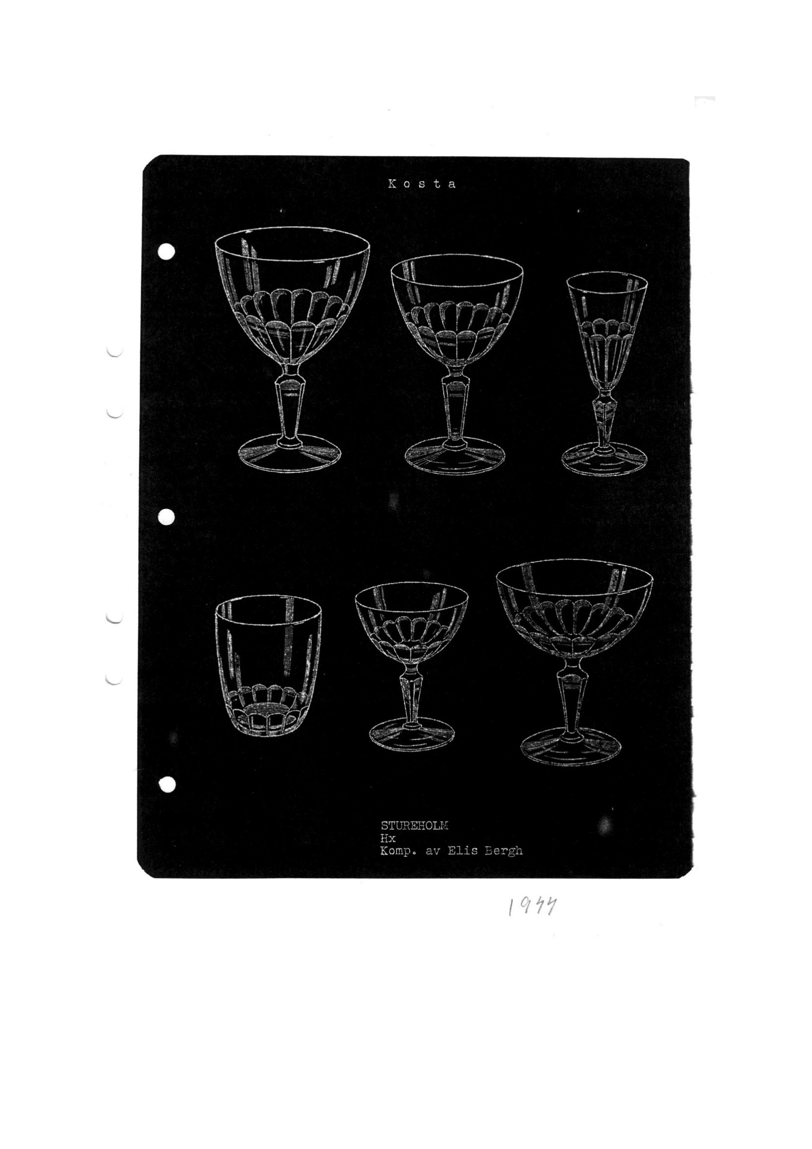 Shown below are catalogue pages from a 1944 Kosta Swedish glass catalogue.