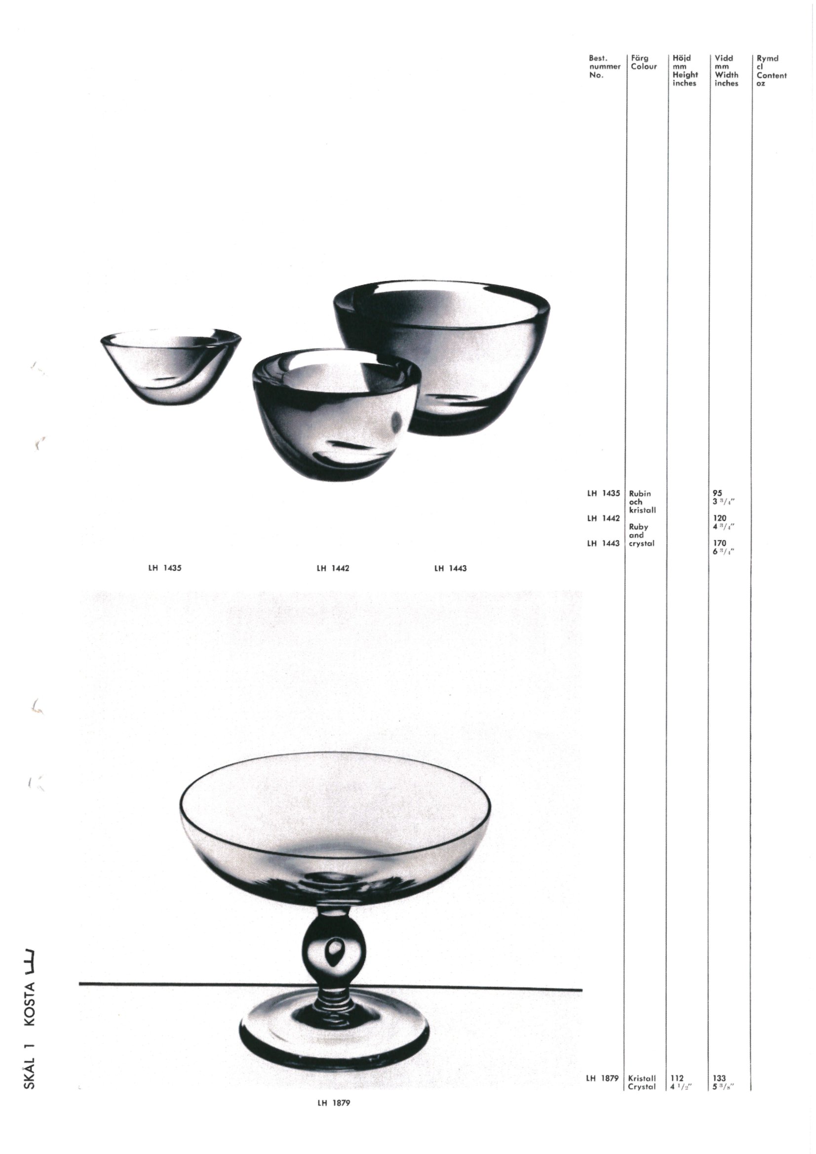 Shown below are catalogue pages from a 1966 Kosta Swedish glass catalogue.