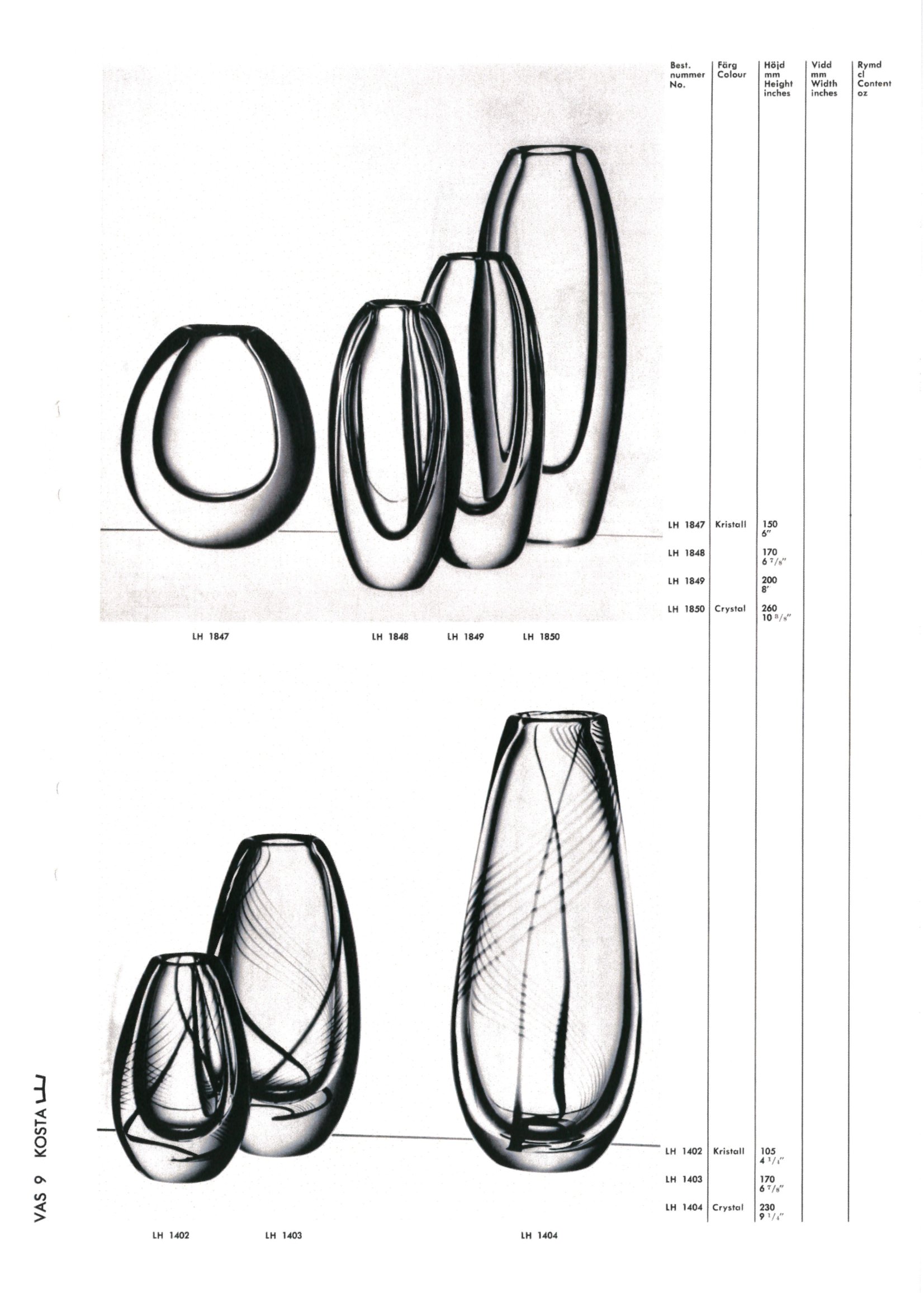 Shown below are catalogue pages from a 1966 Kosta Swedish glass catalogue.