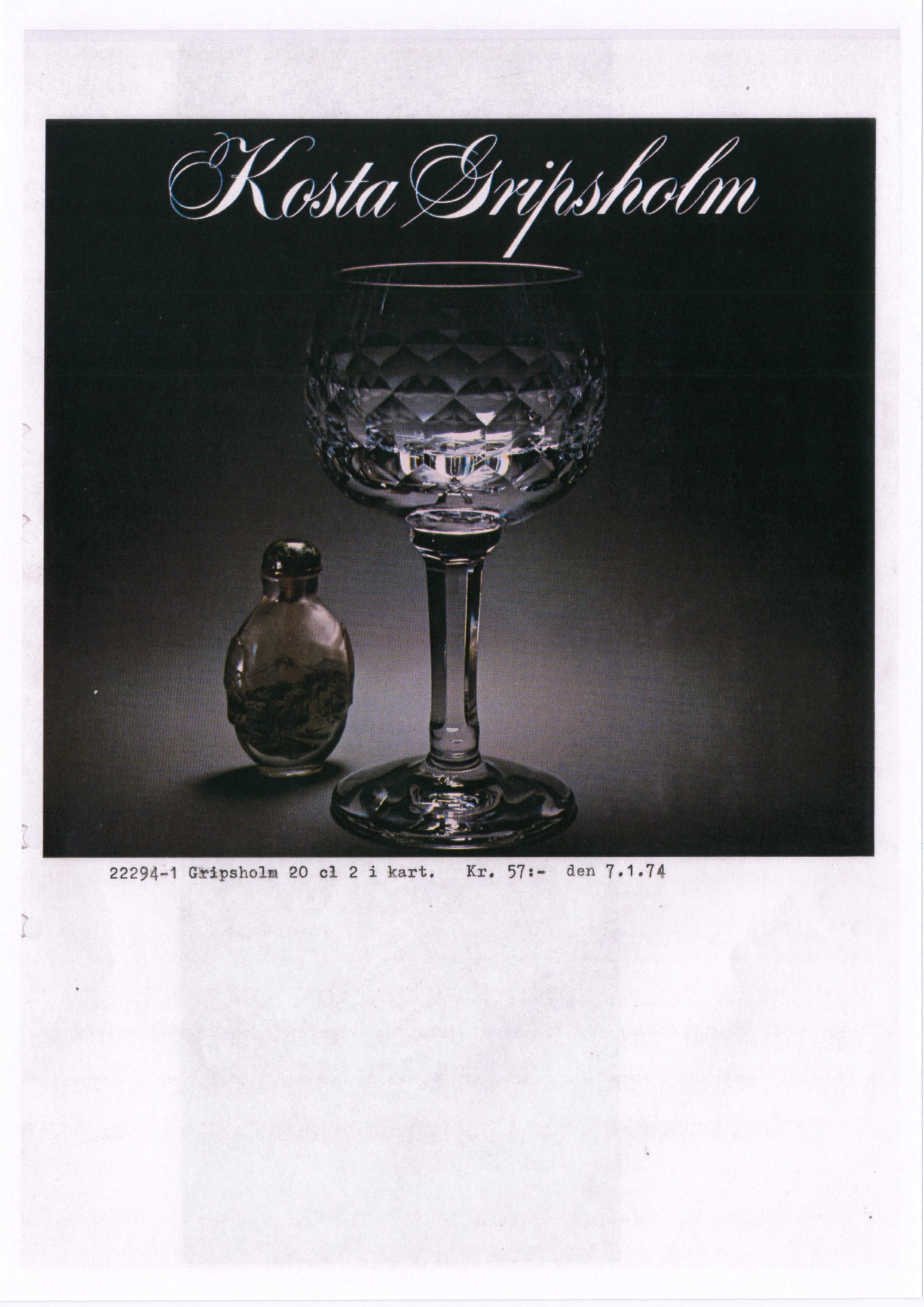 Shown below are catalogue pages from a 1974 Kosta Swedish glass catalogue.