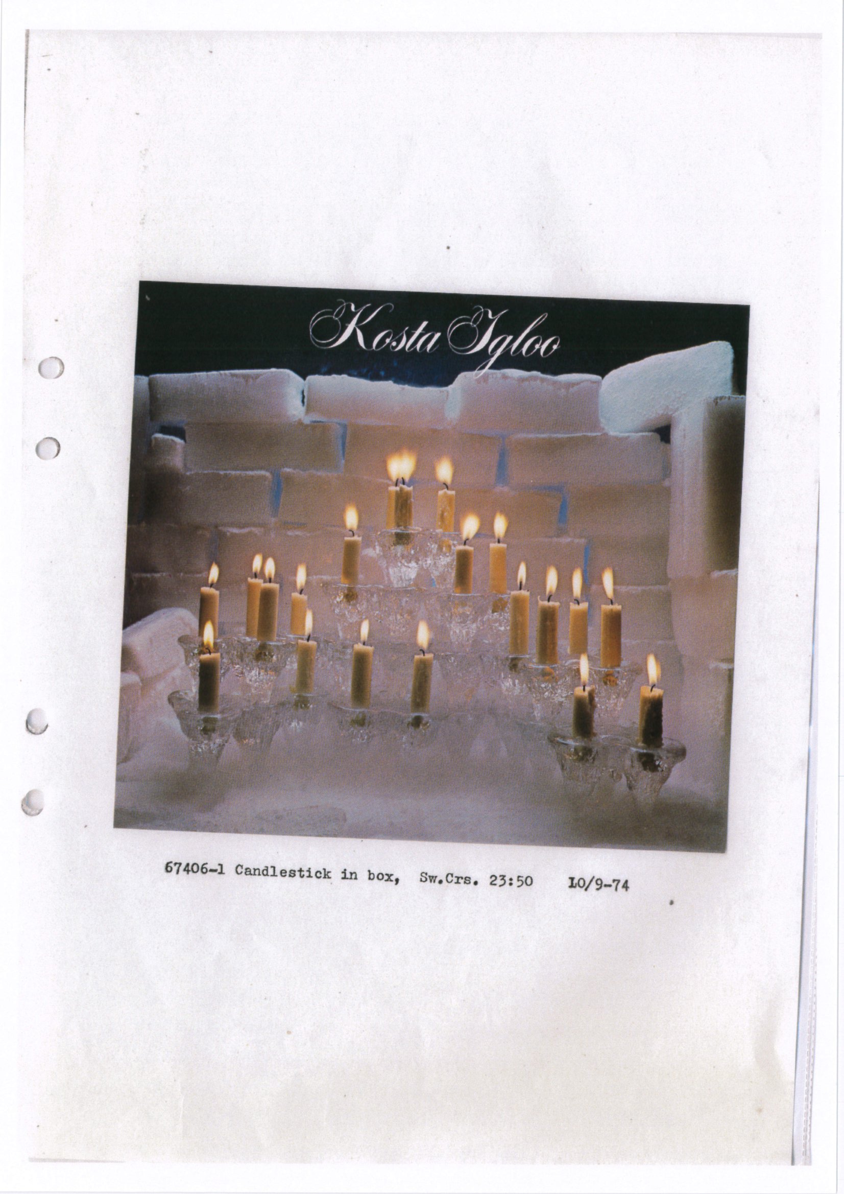 Shown below are catalogue pages from a 1974 Kosta Swedish glass catalogue.