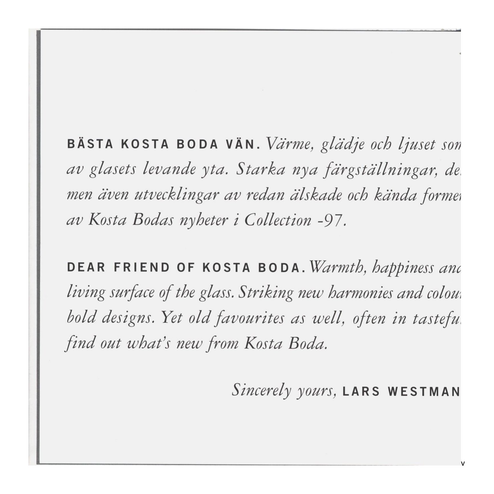 Shown below are catalogue pages from a 1997 Kosta Boda Swedish glass catalogue.