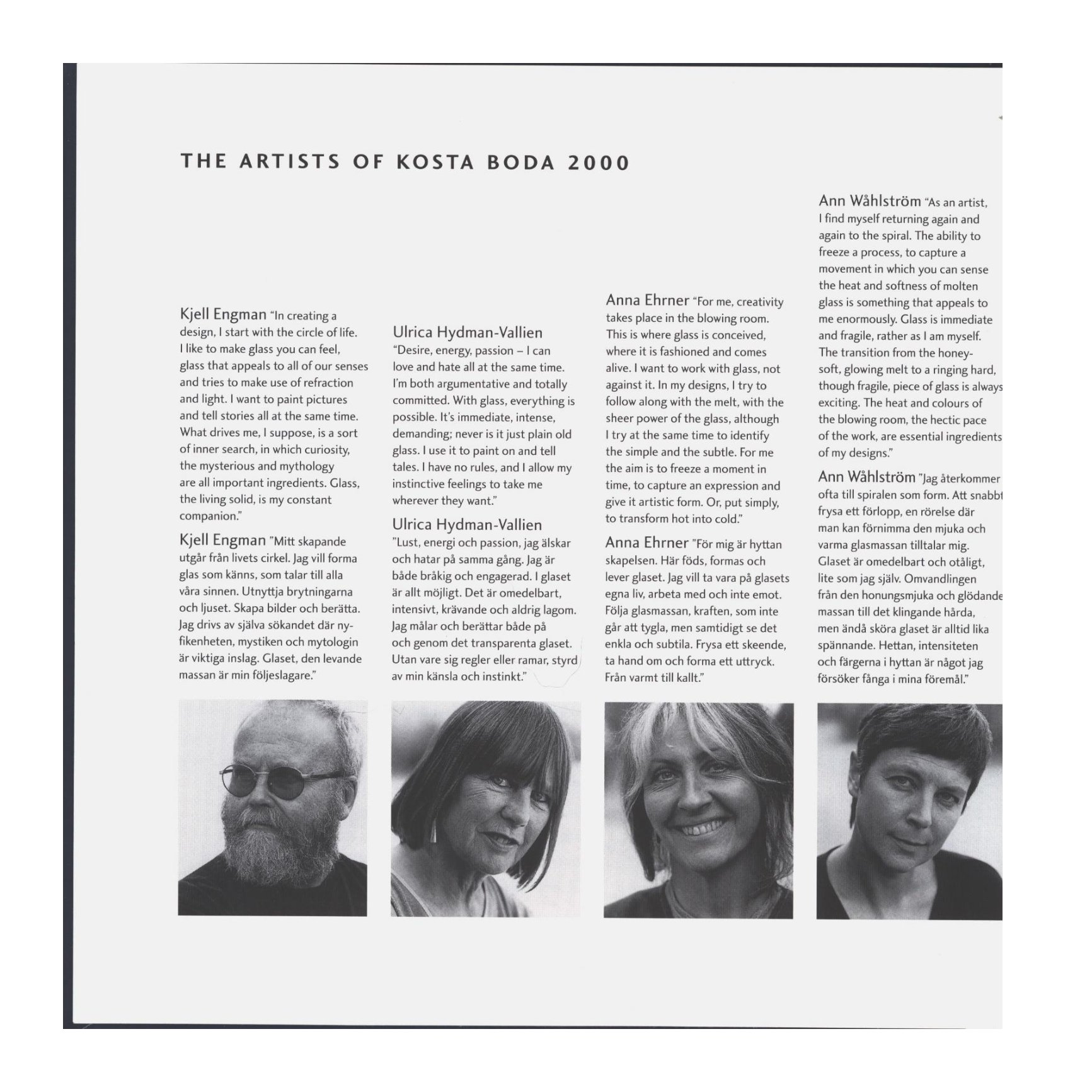 Shown below are catalogue pages from a 2000 Kosta Boda Swedish glass catalogue.
