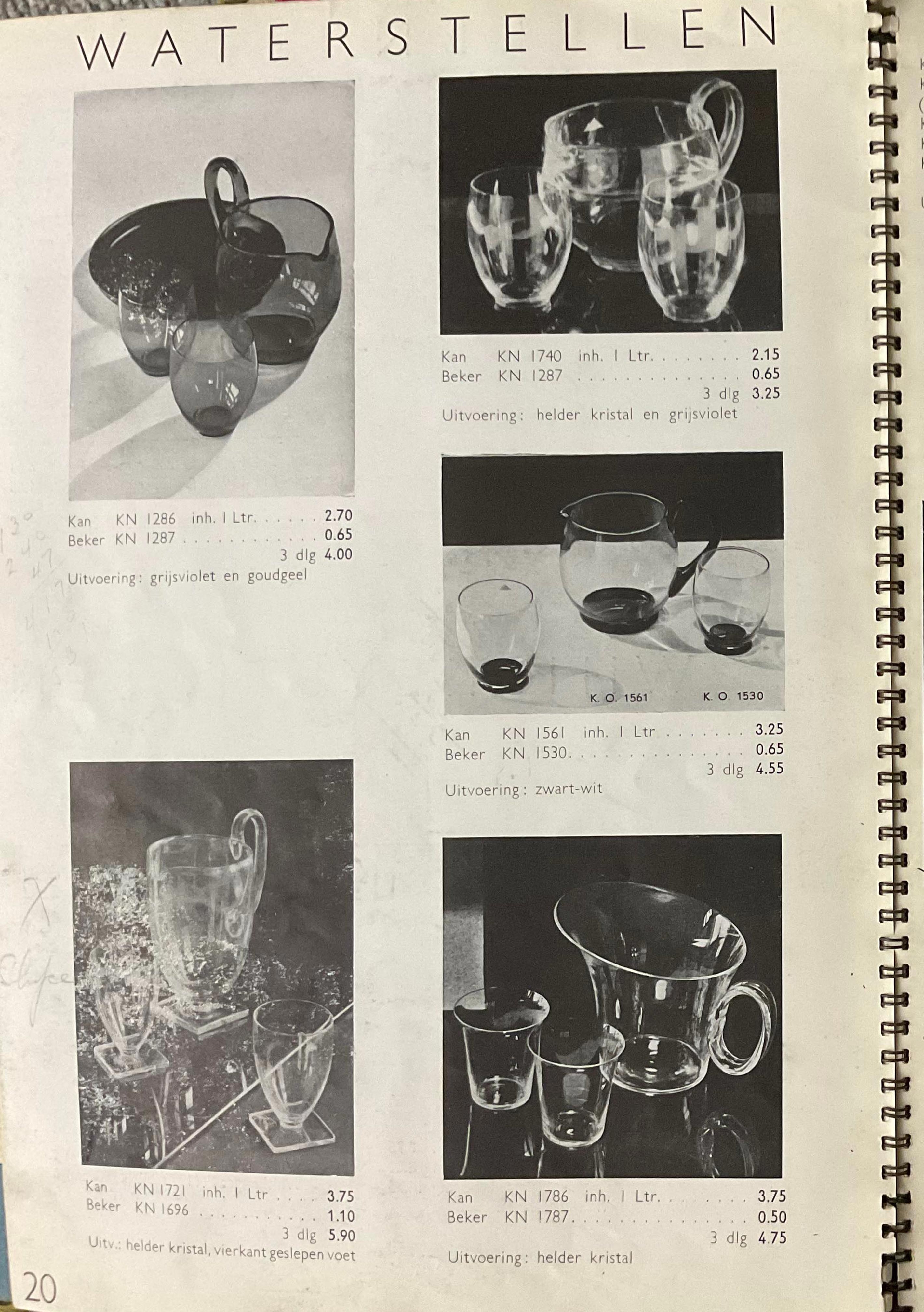 Shown below are catalogue pages from a Leerdam glass catalogue, believed to be from 1936.