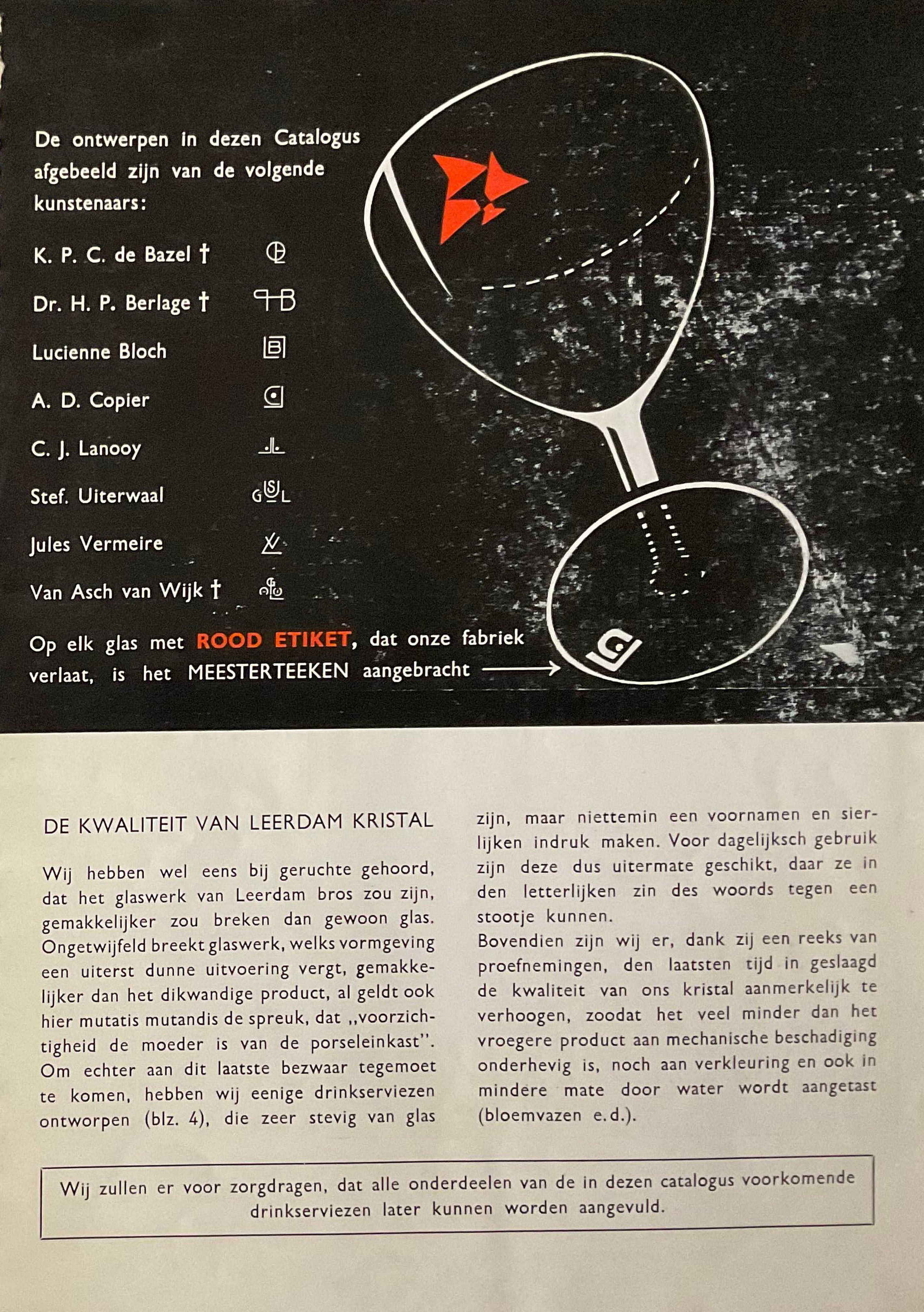 Shown below are catalogue pages from a Leerdam glass catalogue, believed to be from 1936.