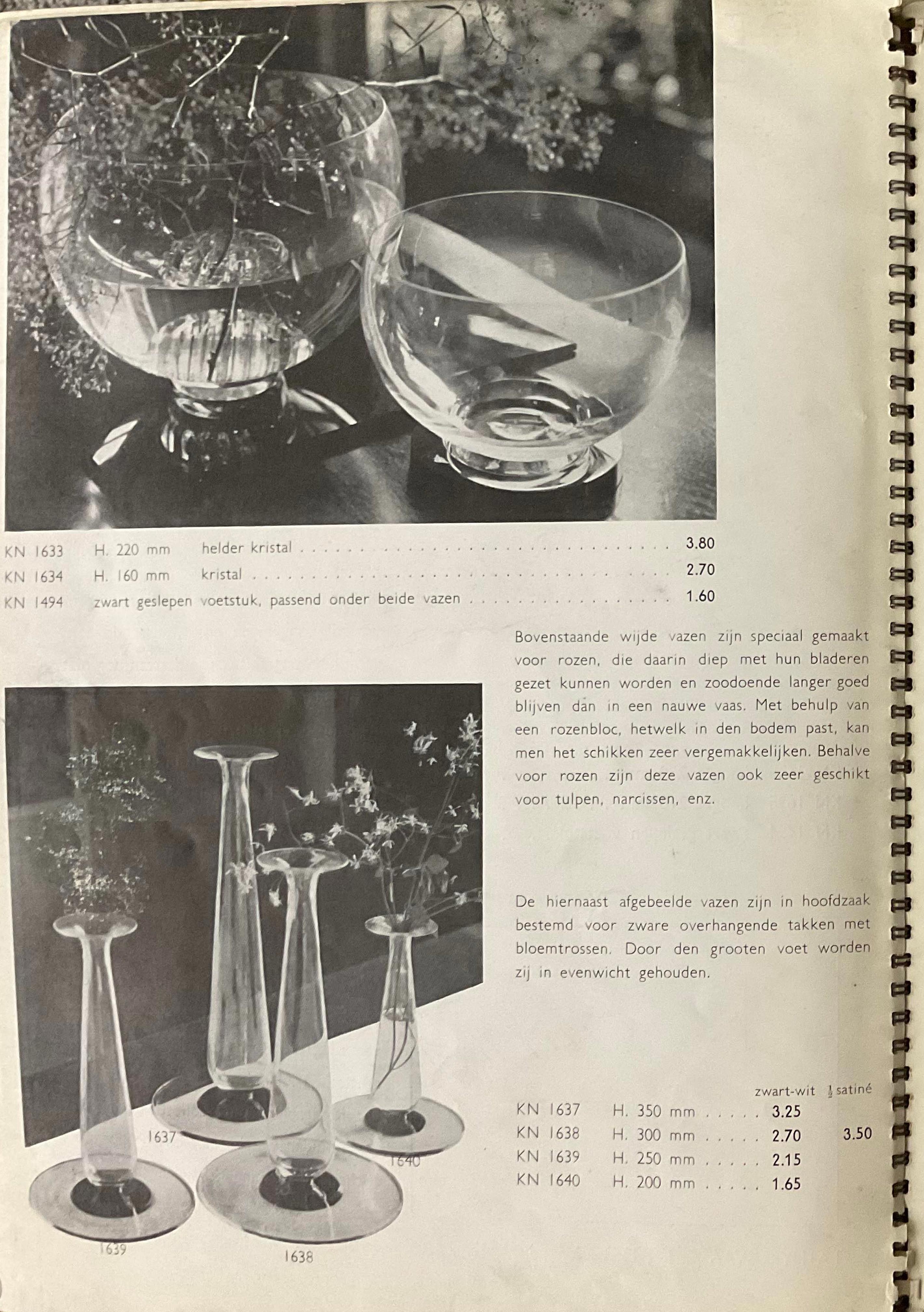 Shown below are catalogue pages from a Leerdam glass catalogue, believed to be from 1936.