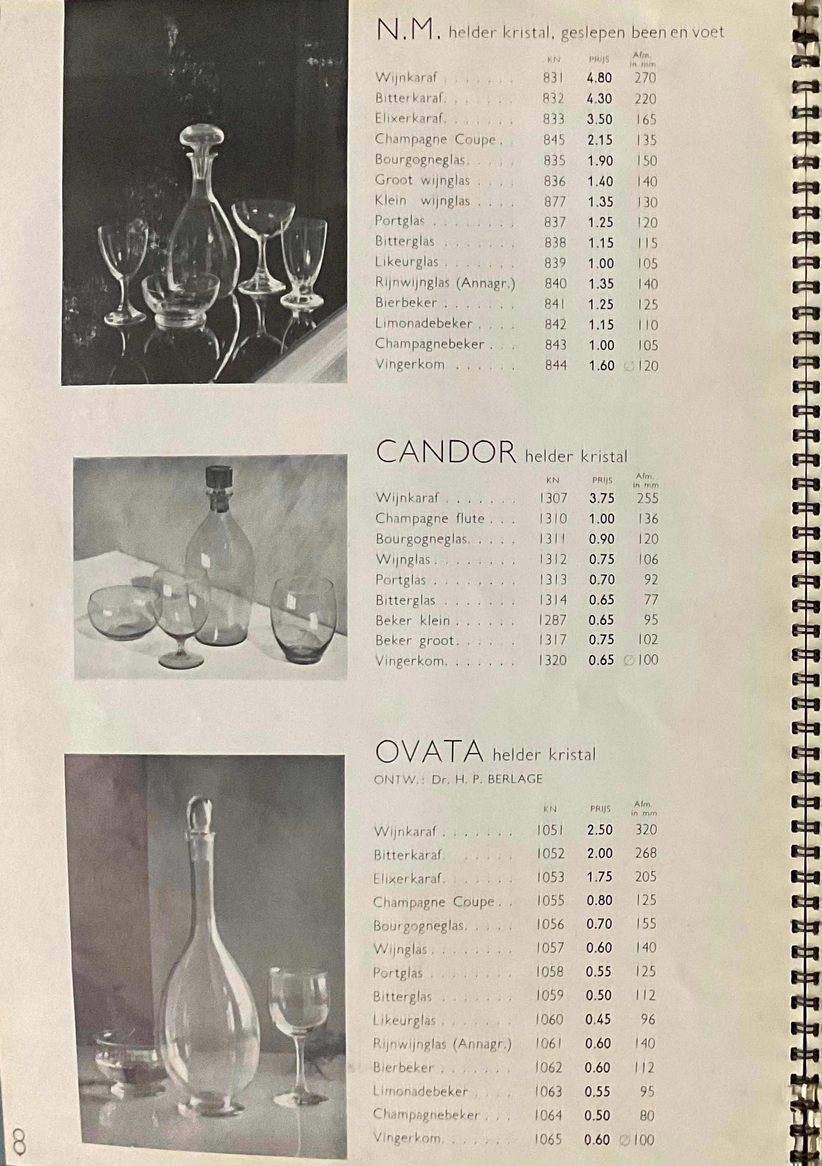 Shown below are catalogue pages from a Leerdam glass catalogue, believed to be from 1936.