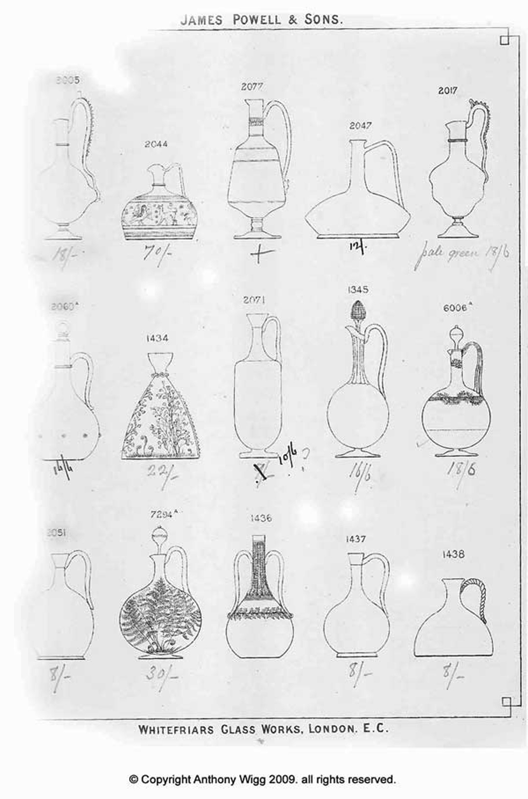 I originally downloaded these catalogue pages from the whitefriars.com site in 2012, for personal use only. The site has long since been taken down, and I'm not sure who was the original owner of these catalogues, or who made the scans, but the name Anthony Wigg is shown in the copyright notice on each page, so a big thanks to him for having a part in making these pages available! I've been unable to track Anthony down, and it would be devastating if these important catalogues were "lost to time", so I hope he will not mind me sharing these pages here. Anthony, or anyone else involved, if you read this and object to these pages being shown here, please let me know, and I will of course take them down.