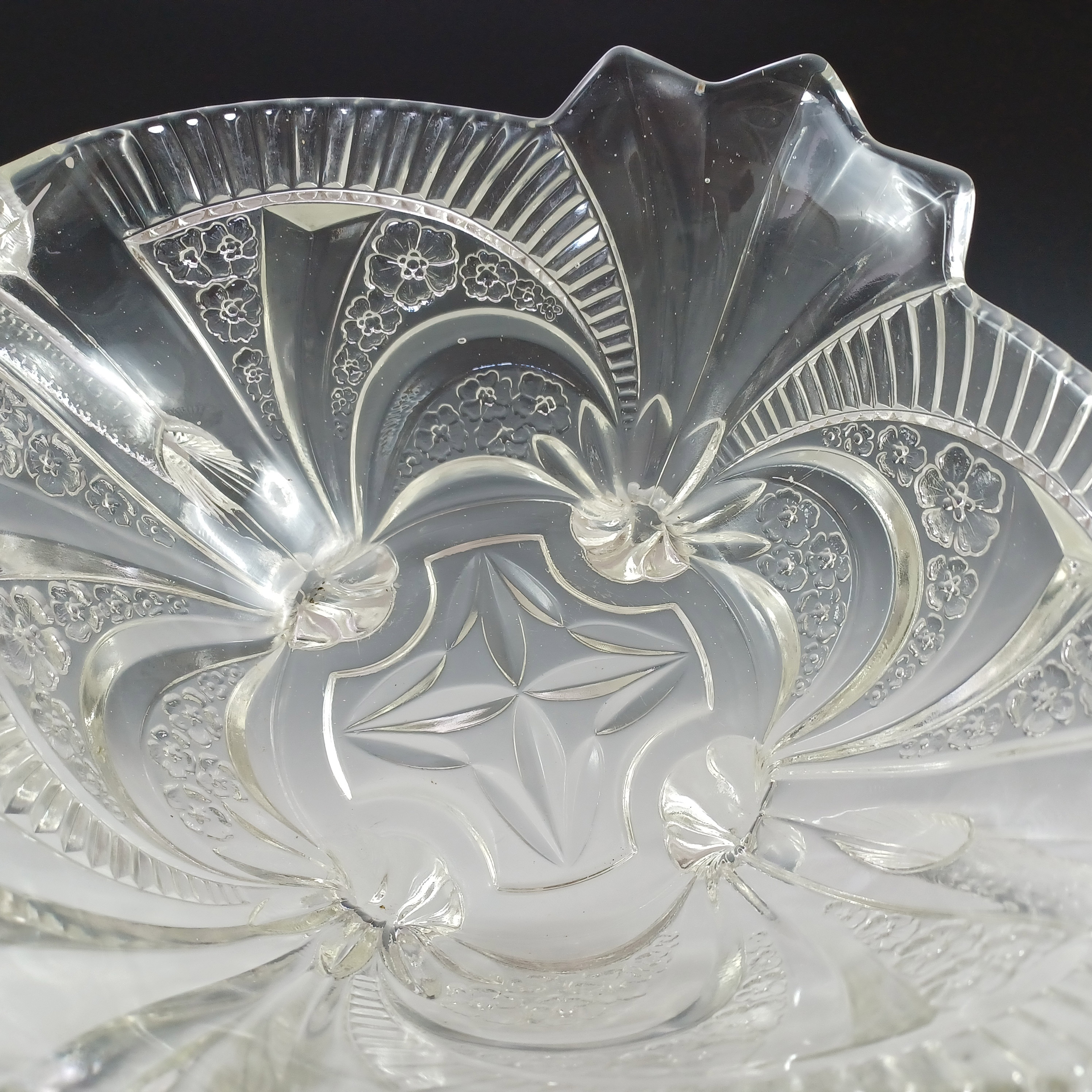 Art Deco 1930's Vintage Opalescent Glass Clam Shell Bowl