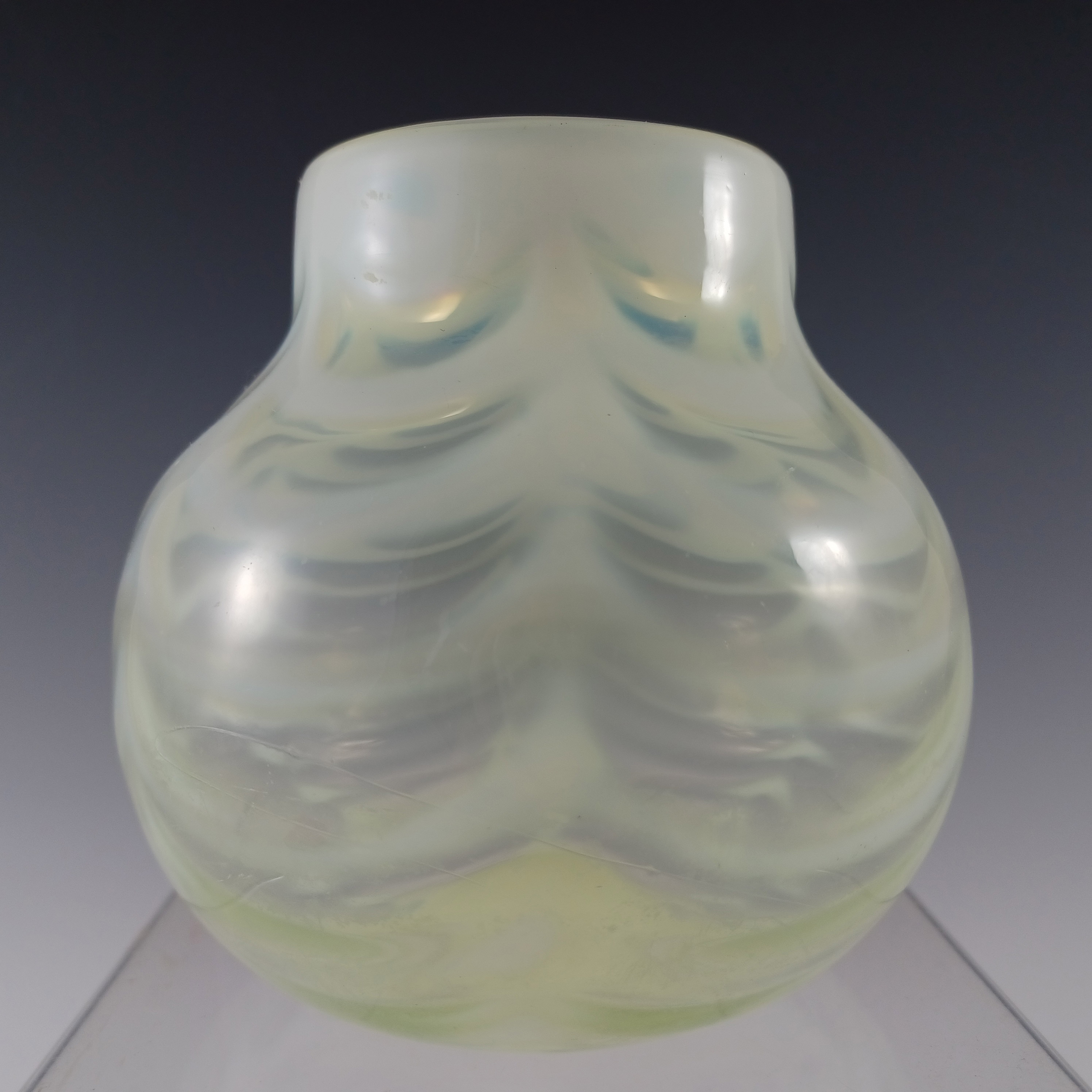 John Walsh Vaseline / Uranium Opalescent Glass 'Spiralling Dots' Vase