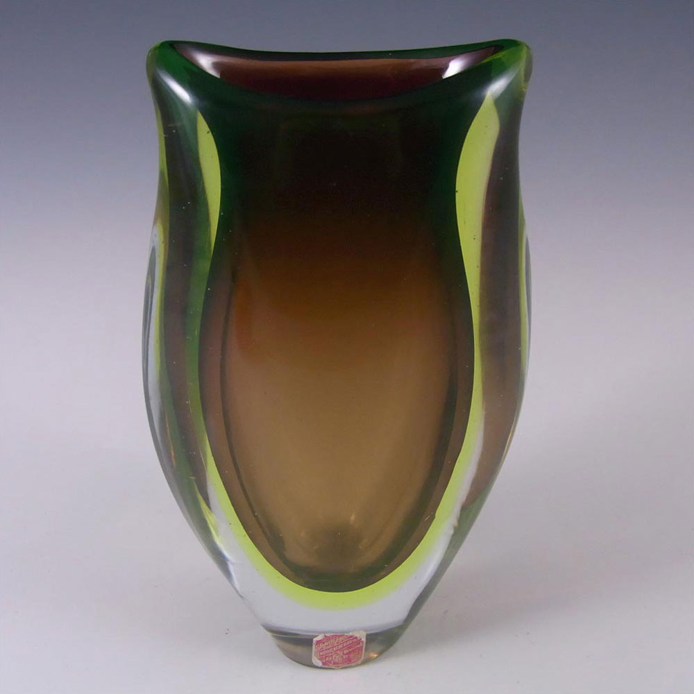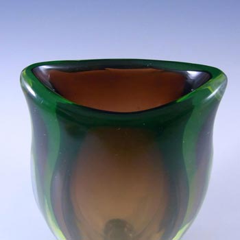 HUGE Stelvia Empoli Green Retro Cased Glass Vintage 'Tiki' Vase