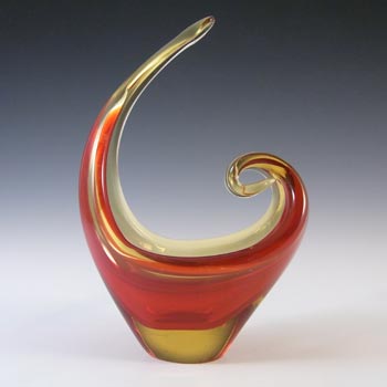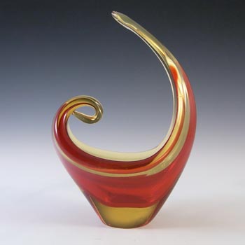 LABELLED Holmegaard Carnaby Red Cased Glass Vase by Per Lutken
