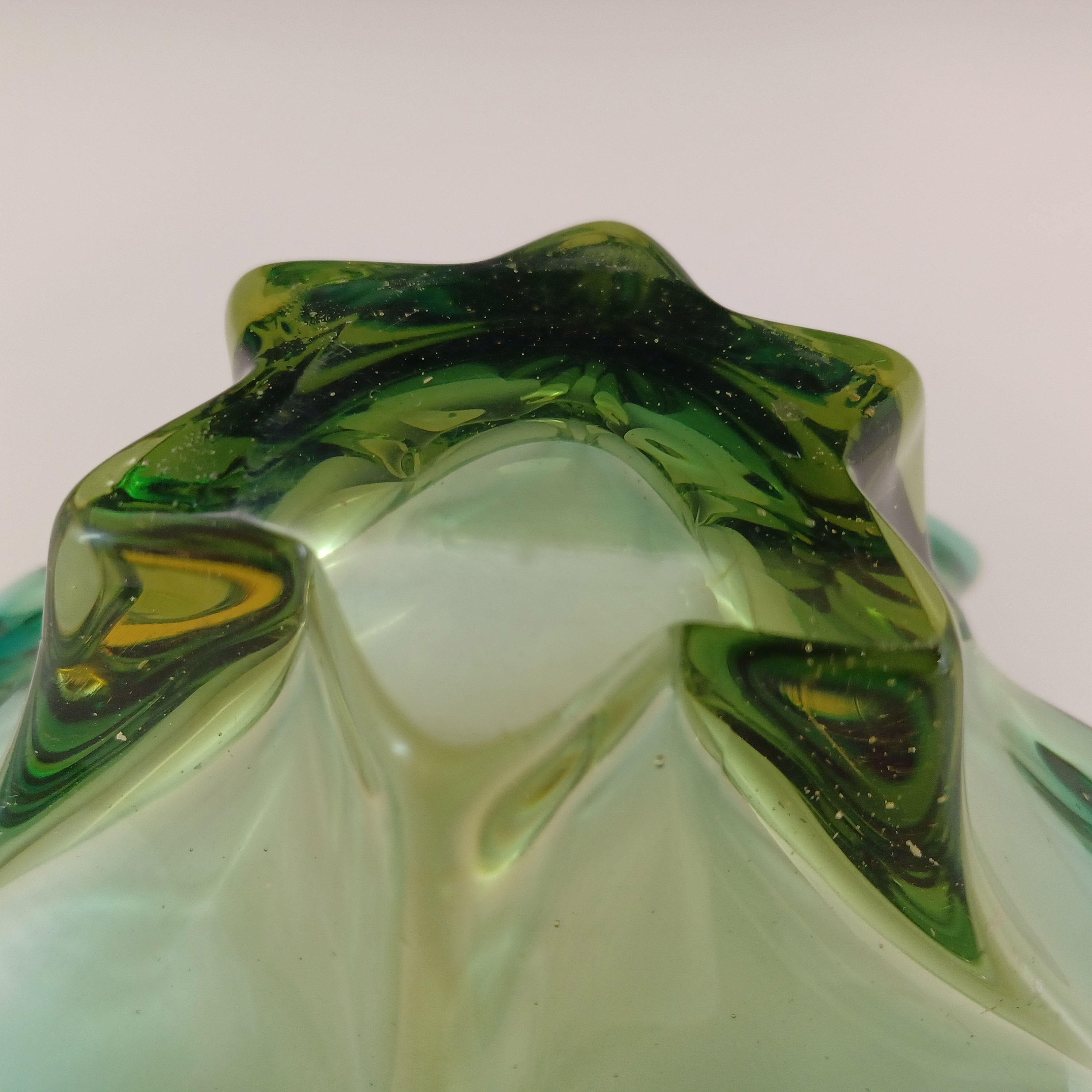 HUGE Stelvia Empoli Green Retro Cased Glass Vintage 'Tiki' Vase