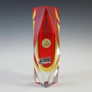 LABELLED Holmegaard Carnaby Red Cased Glass Vase by Per Lutken