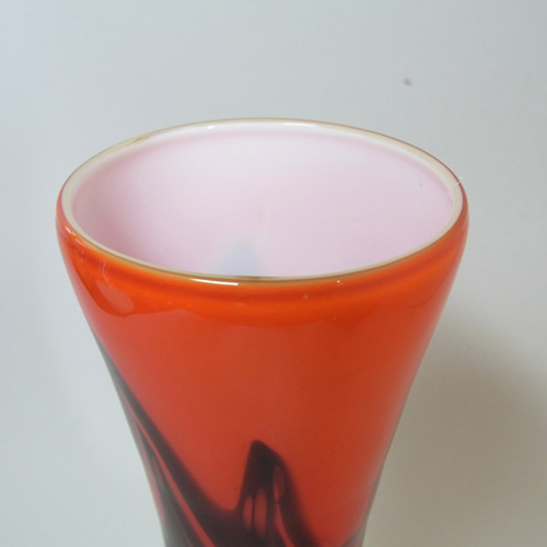 LABELLED Holmegaard Carnaby Red Cased Glass Vase by Per Lutken