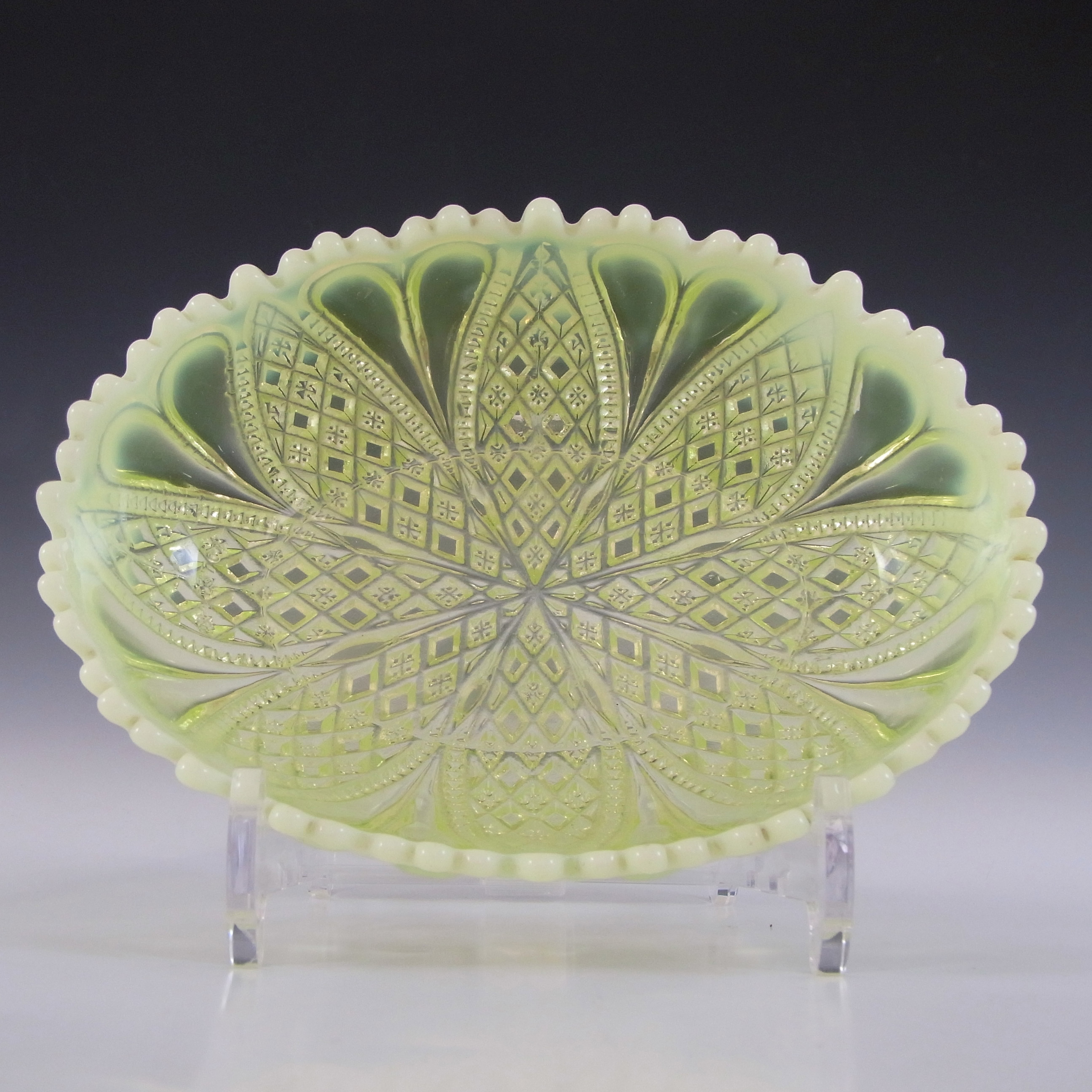Art Deco 1930's Vintage Opalescent Glass Clam Shell Bowl