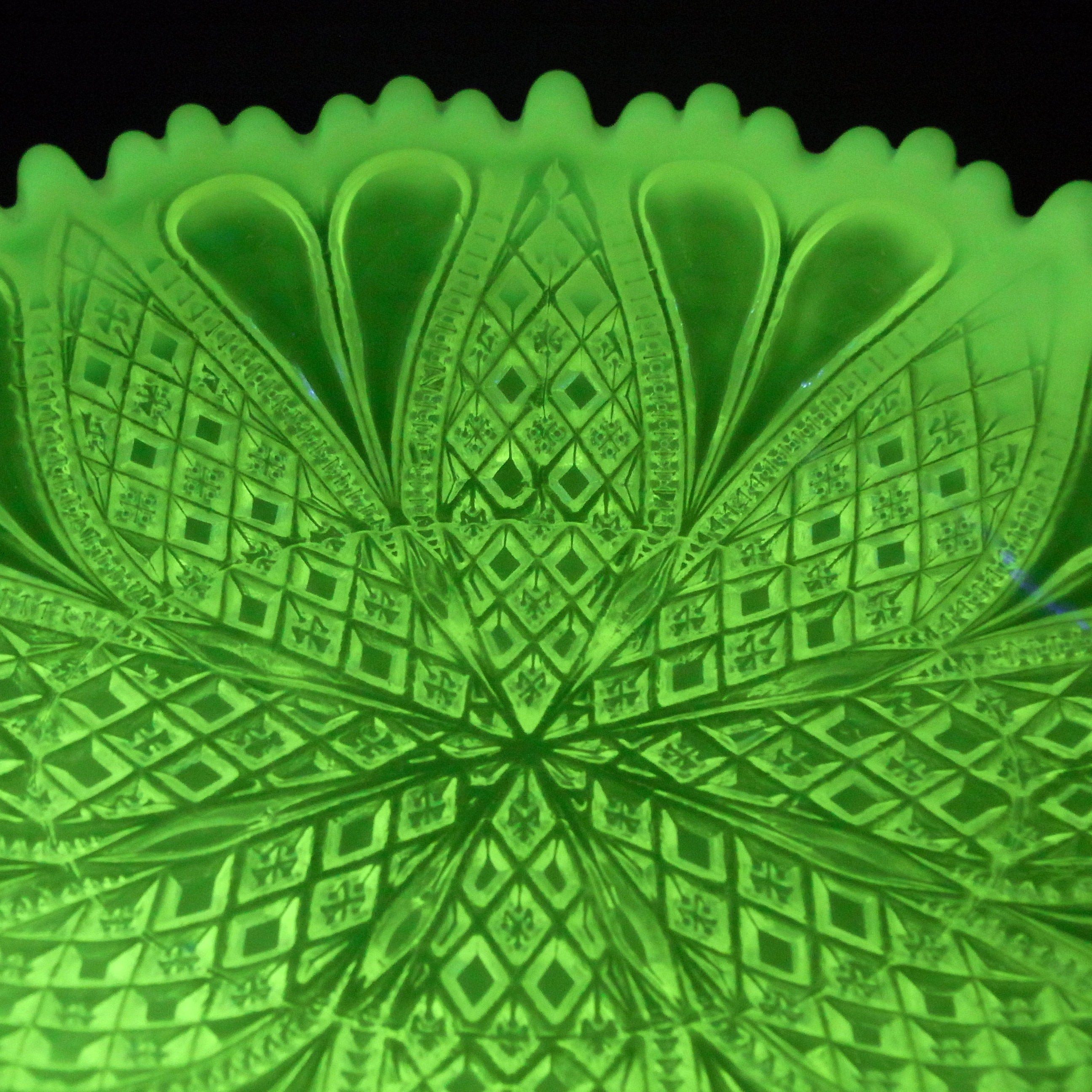 John Walsh Vaseline / Uranium Opalescent Glass 'Spiralling Dots' Vase