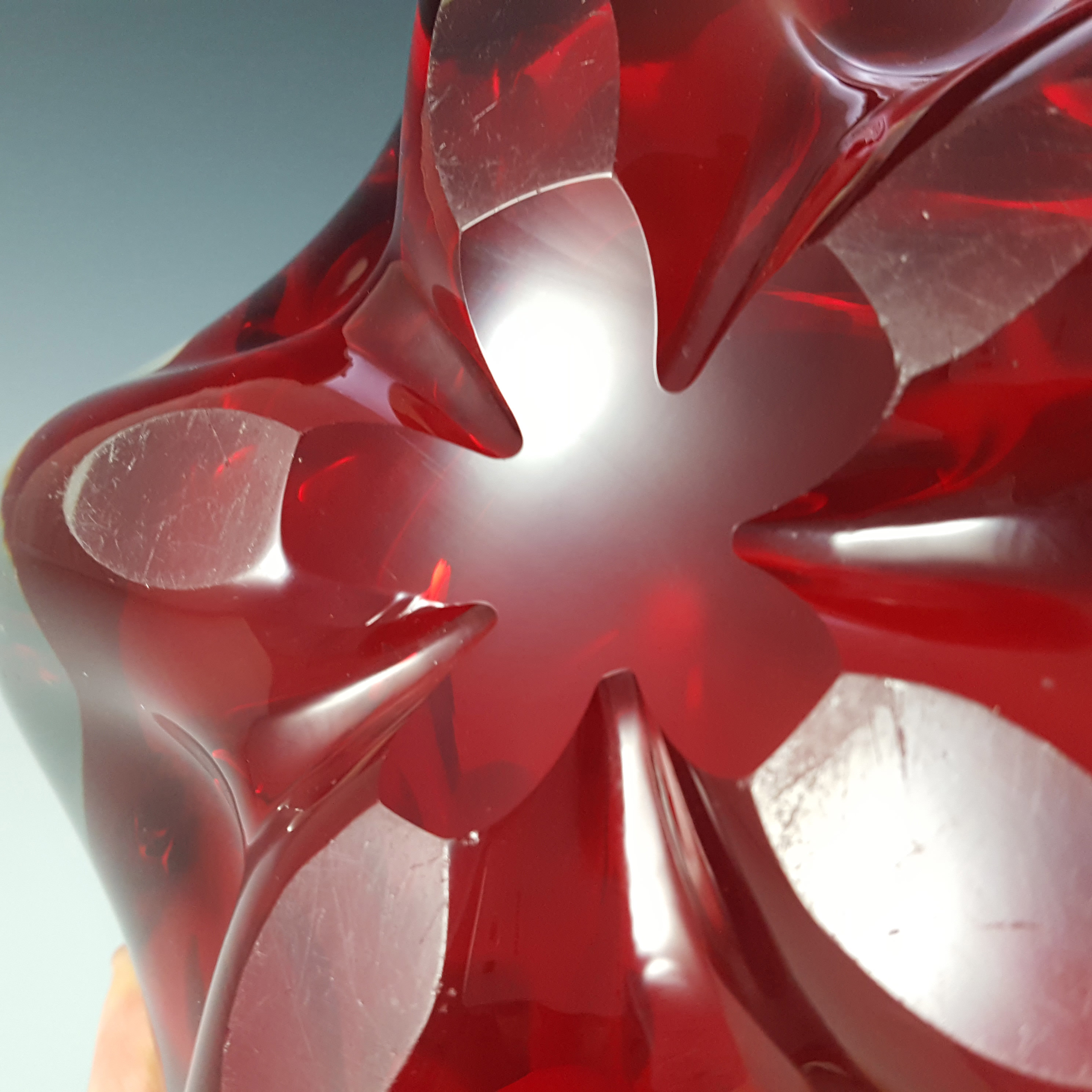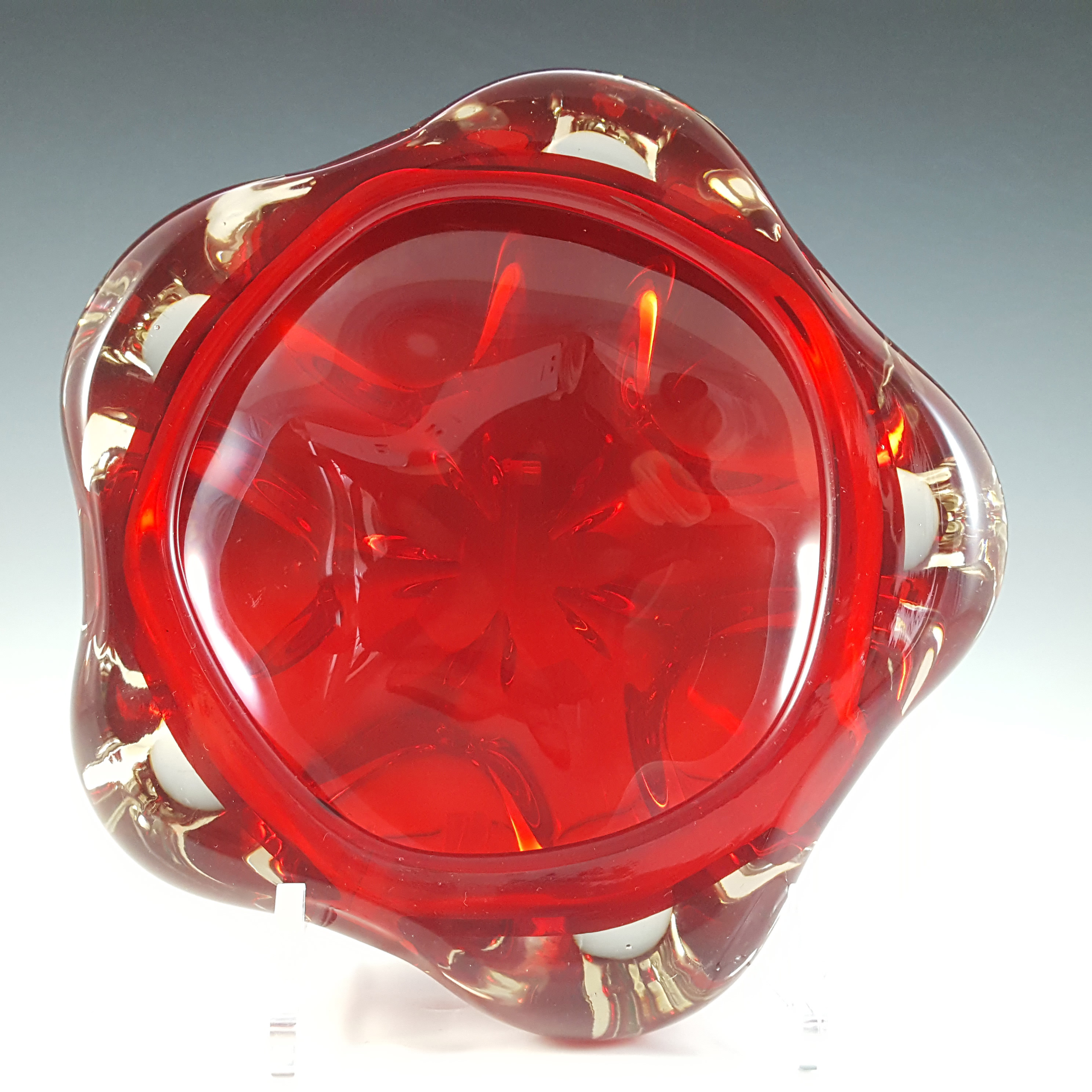 LABELLED Holmegaard Carnaby Red Cased Glass Vase by Per Lutken