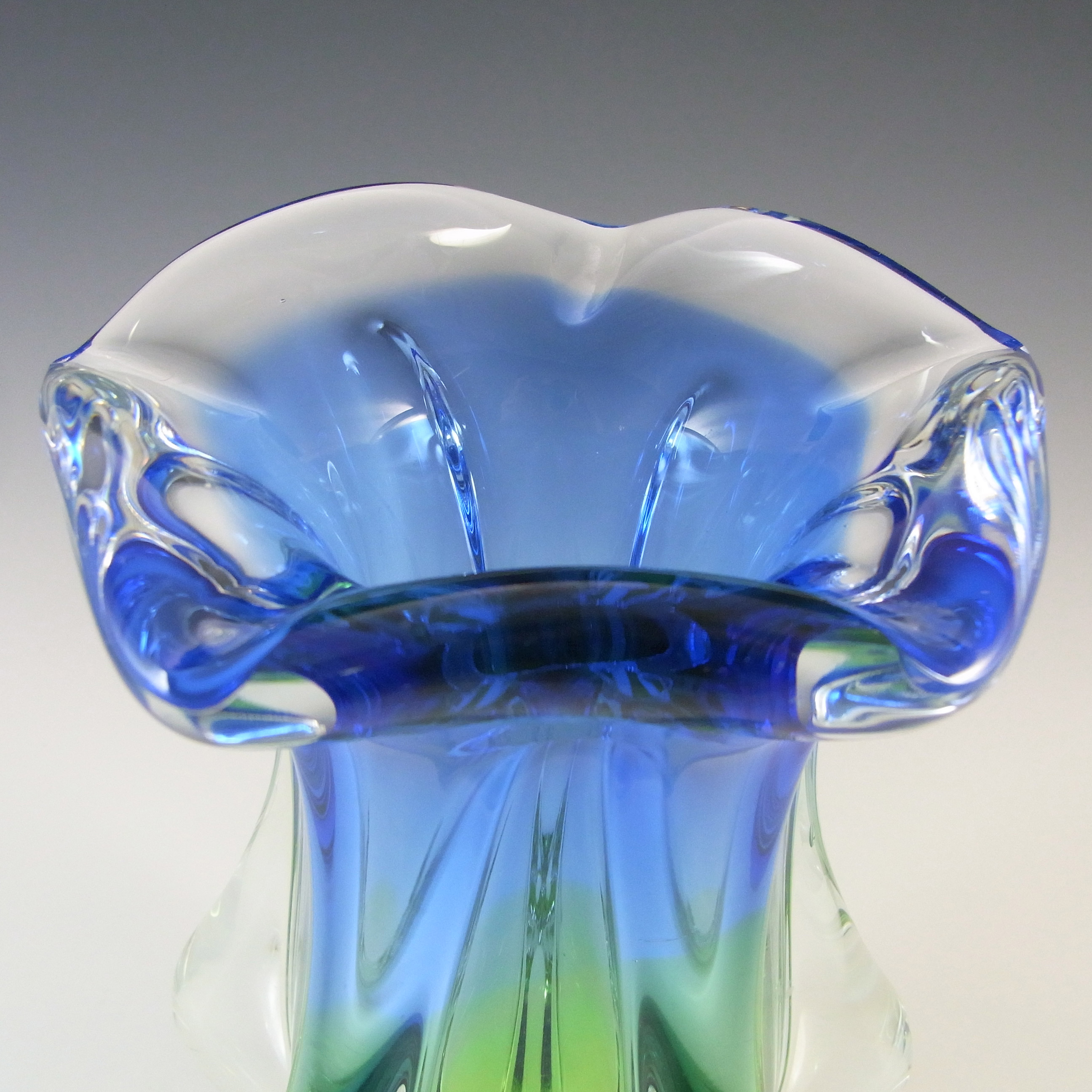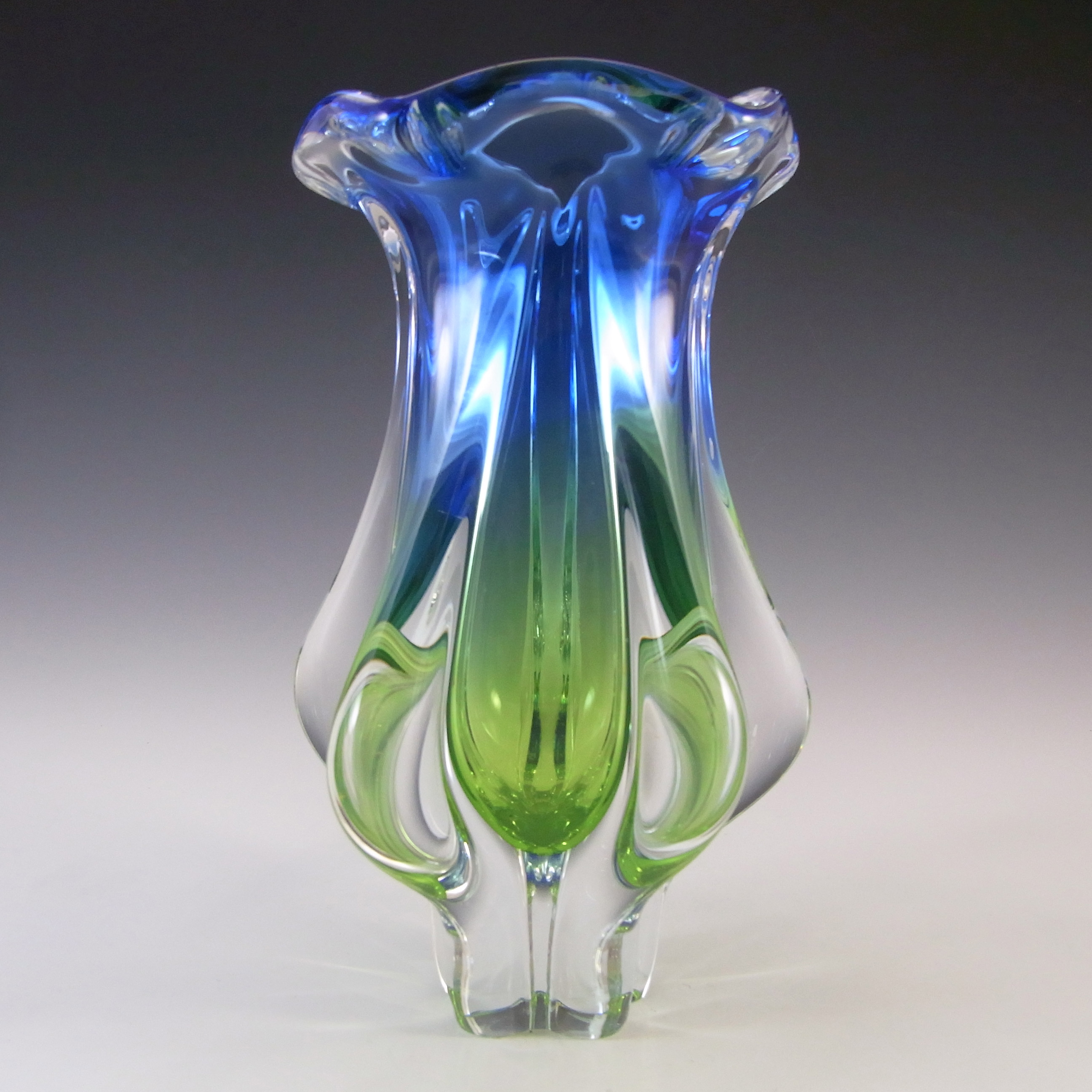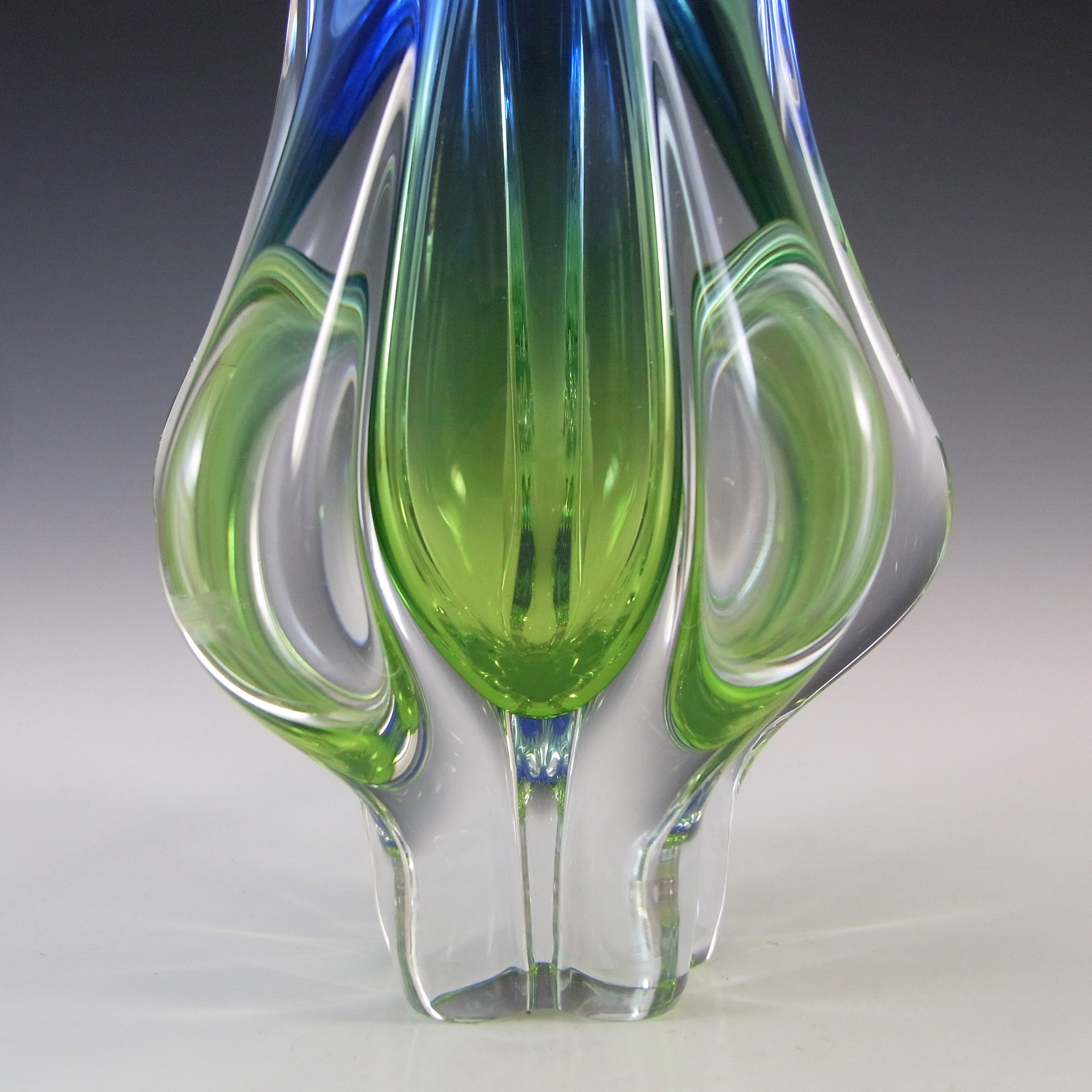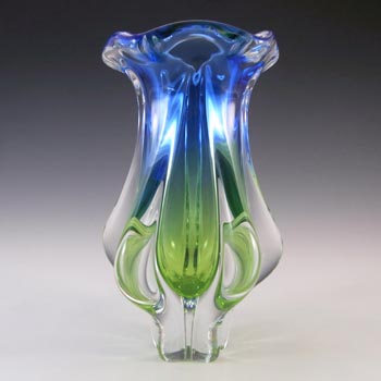 HUGE Stelvia Empoli Green Retro Cased Glass Vintage 'Tiki' Vase