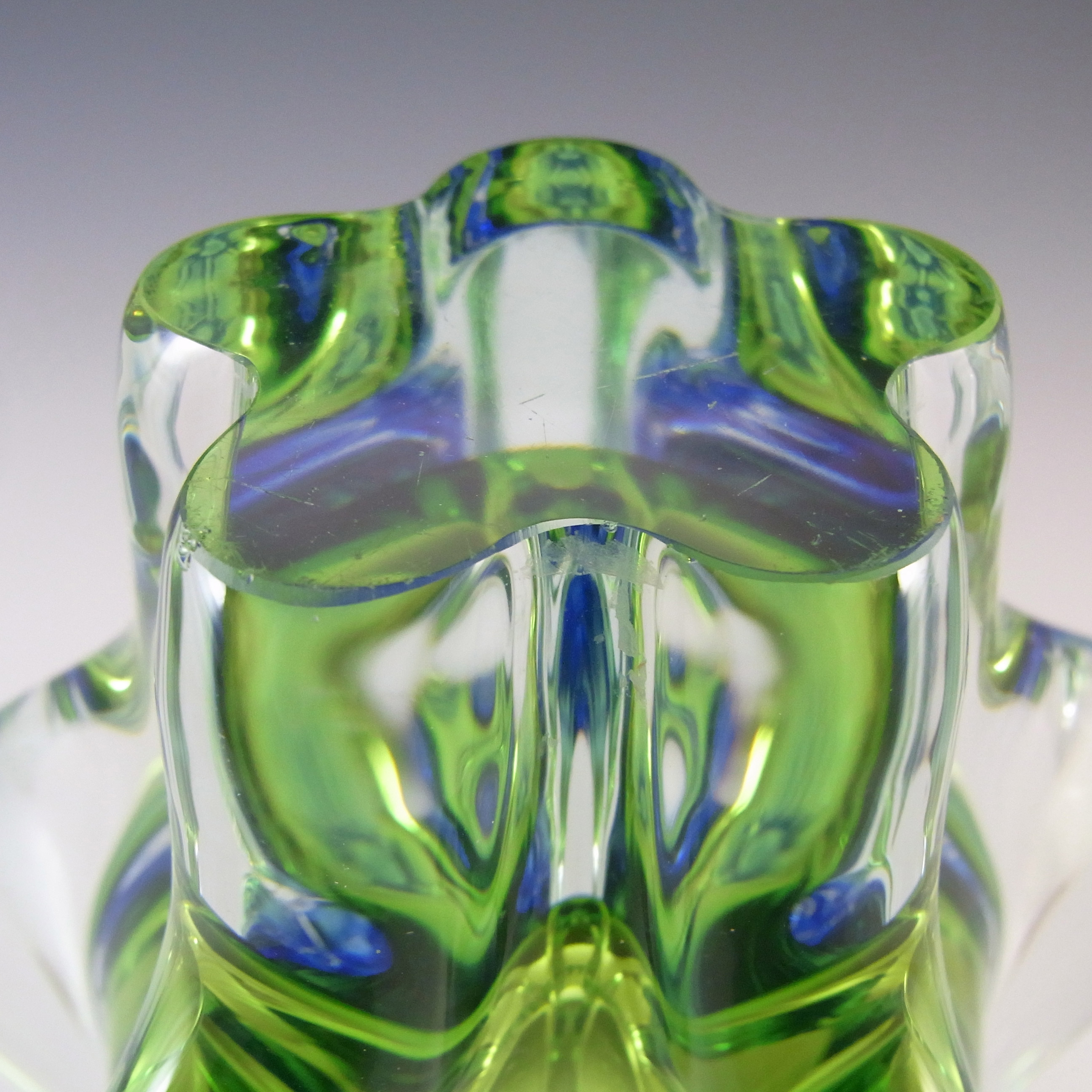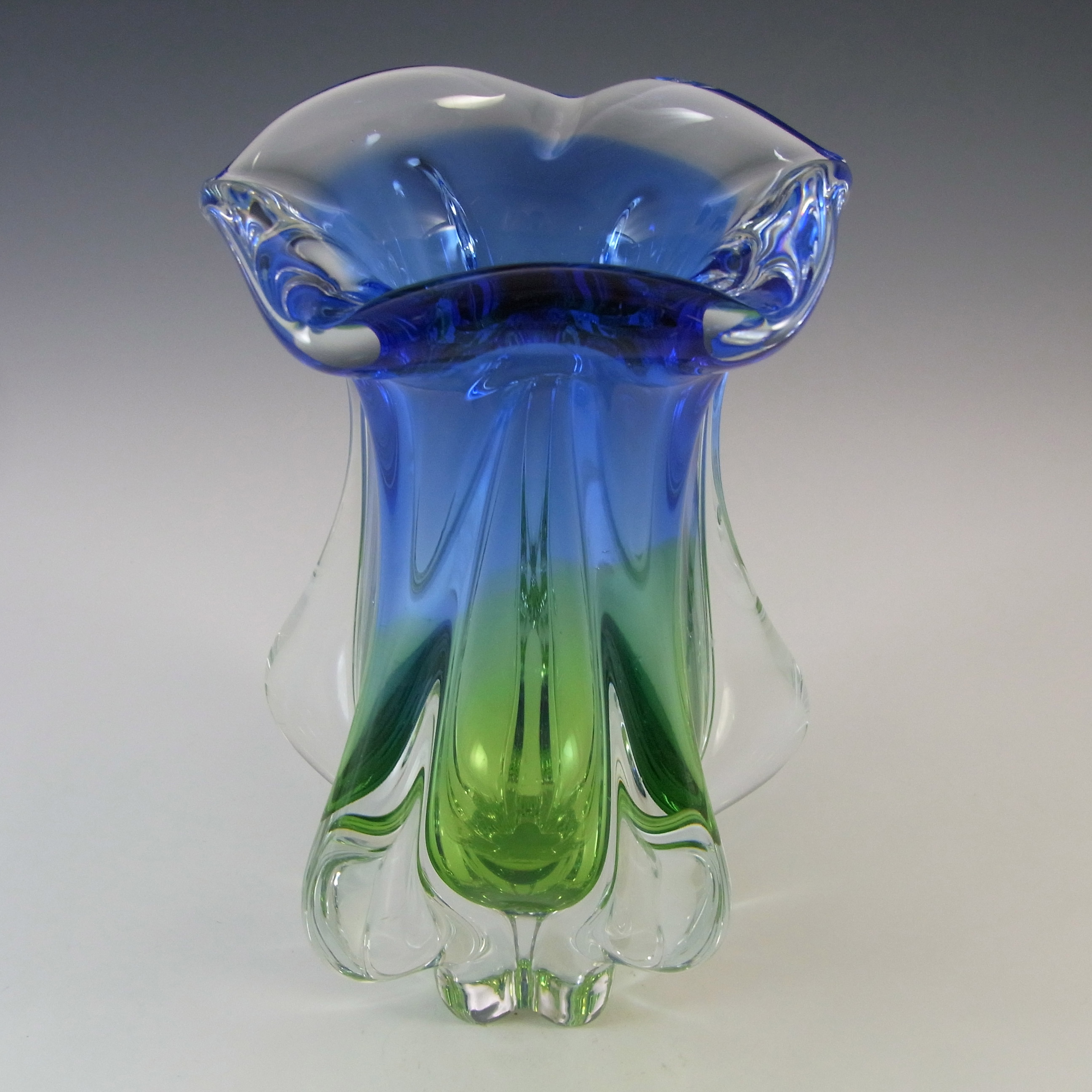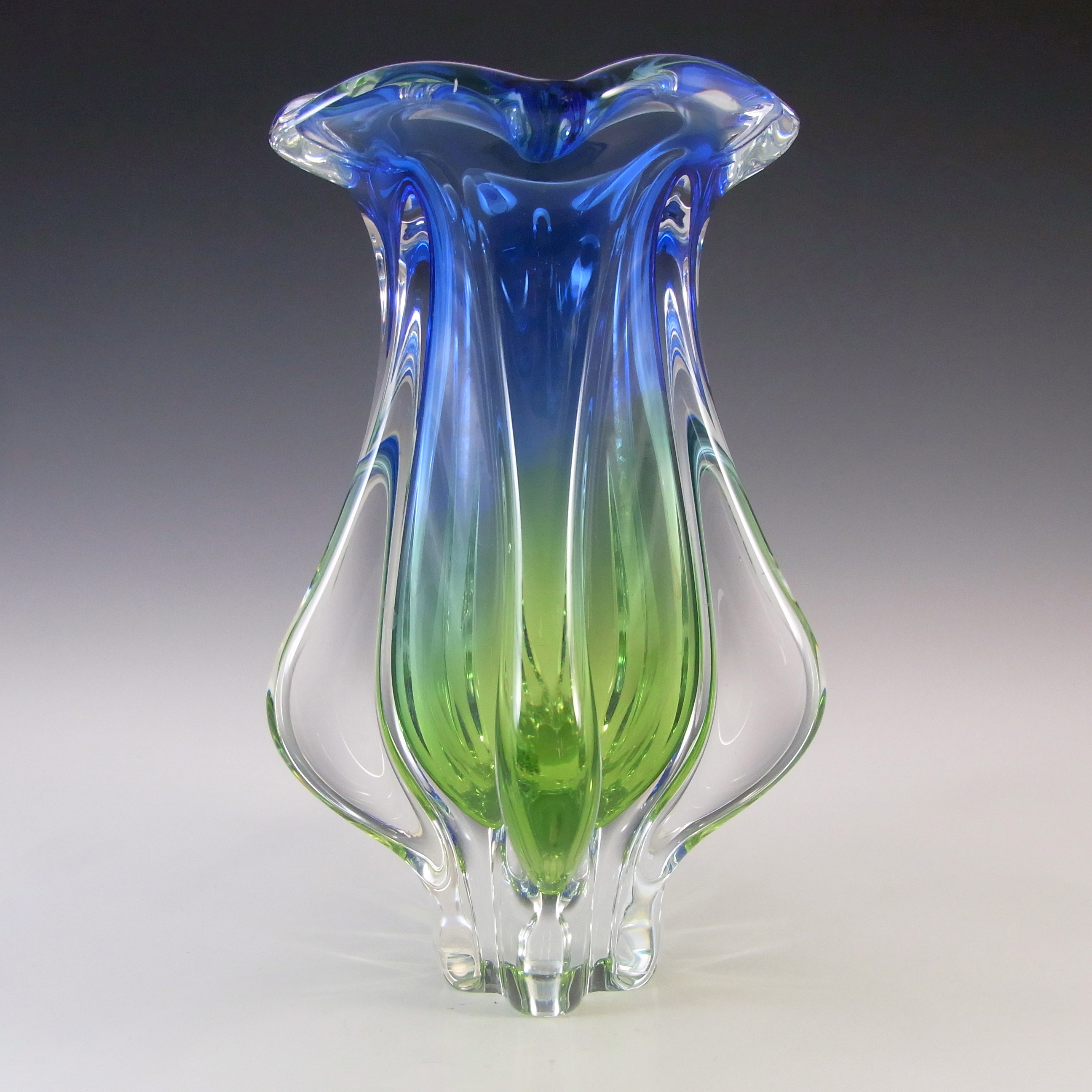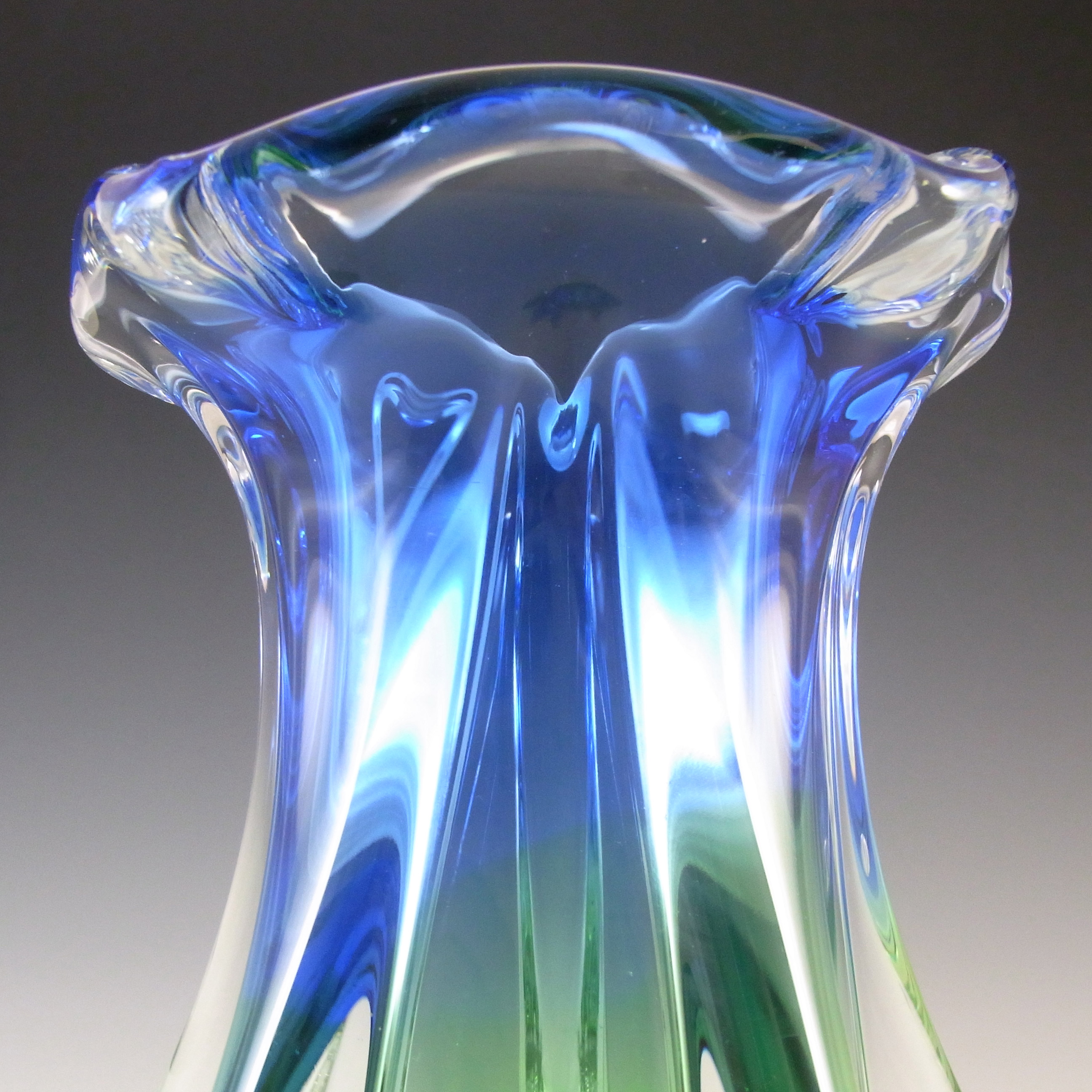HUGE Stelvia Empoli Green Retro Cased Glass Vintage 'Tiki' Vase