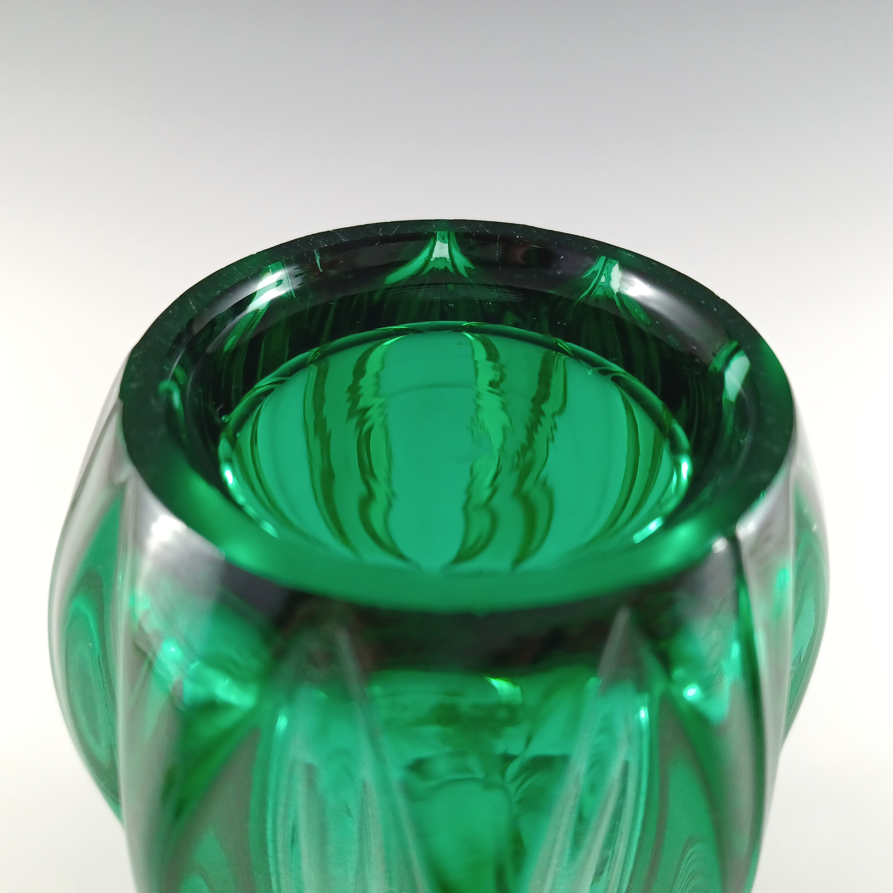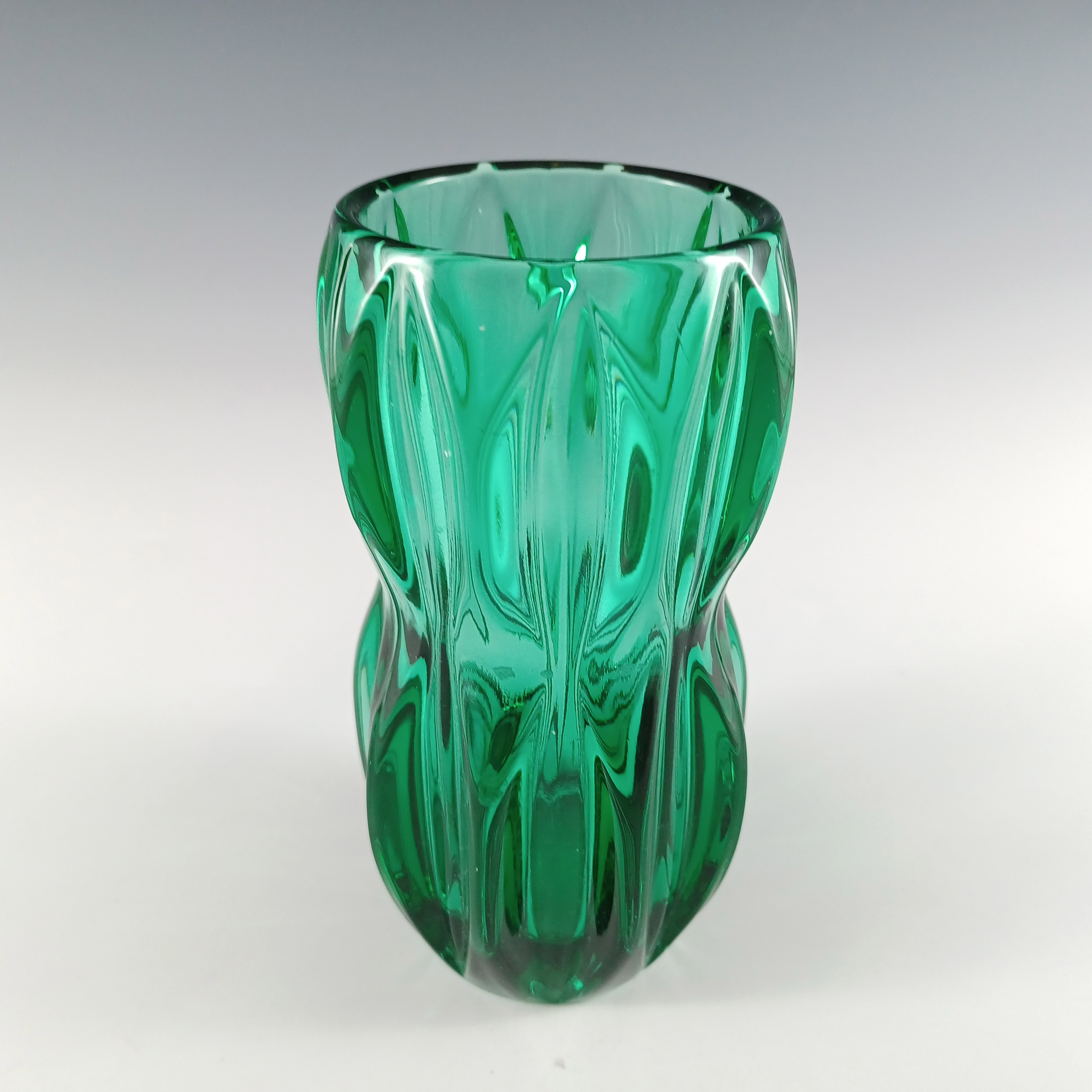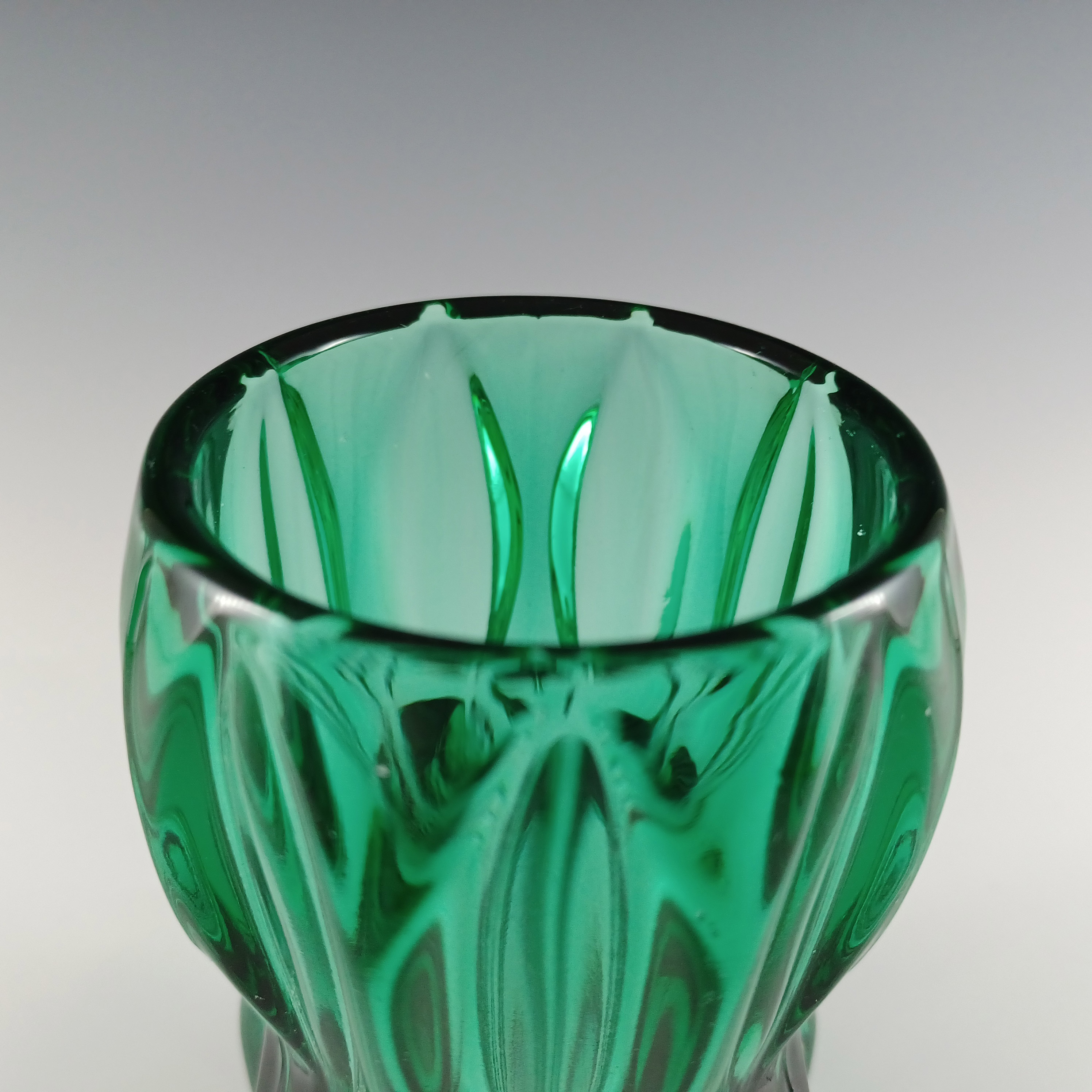 HUGE Stelvia Empoli Green Retro Cased Glass Vintage 'Tiki' Vase