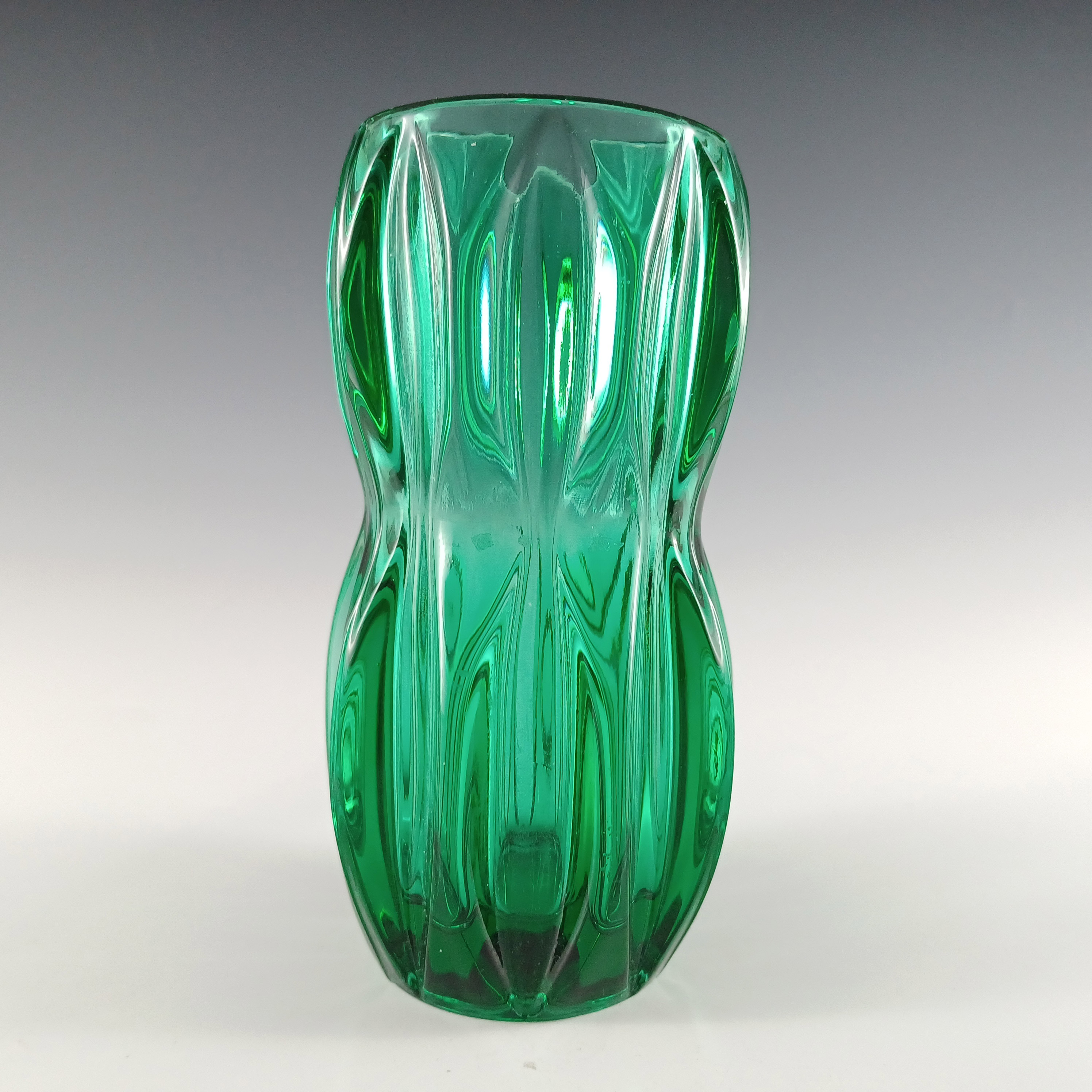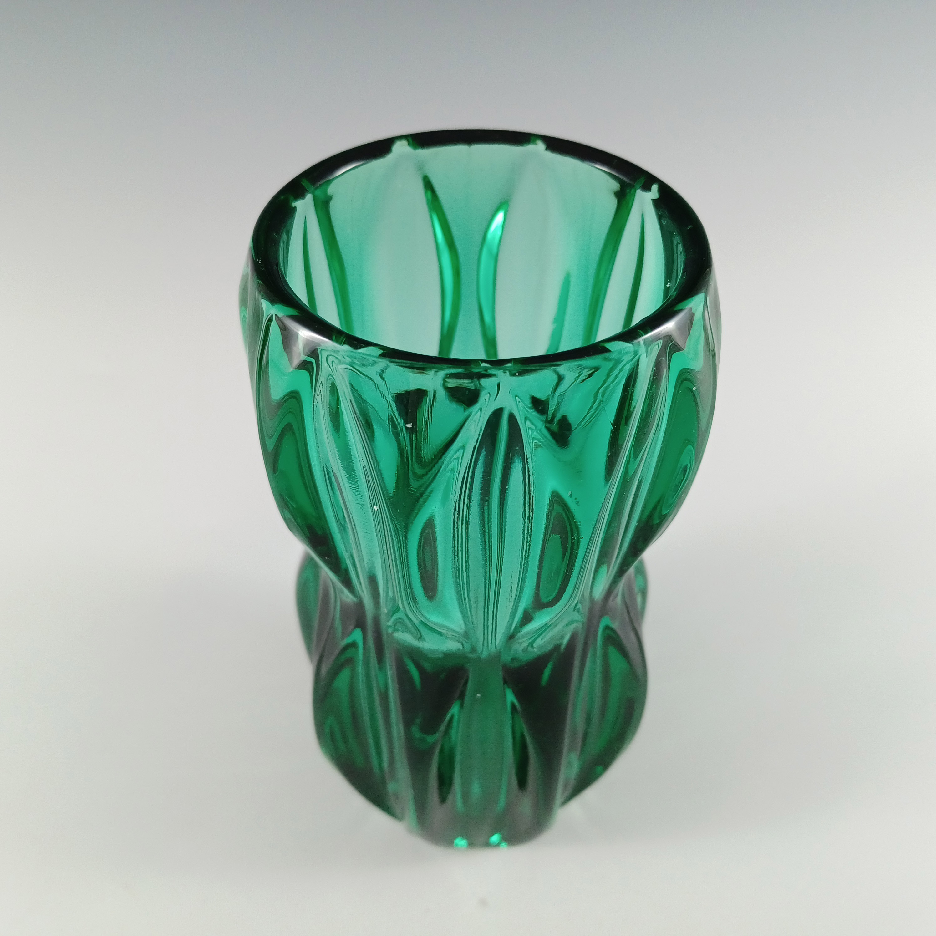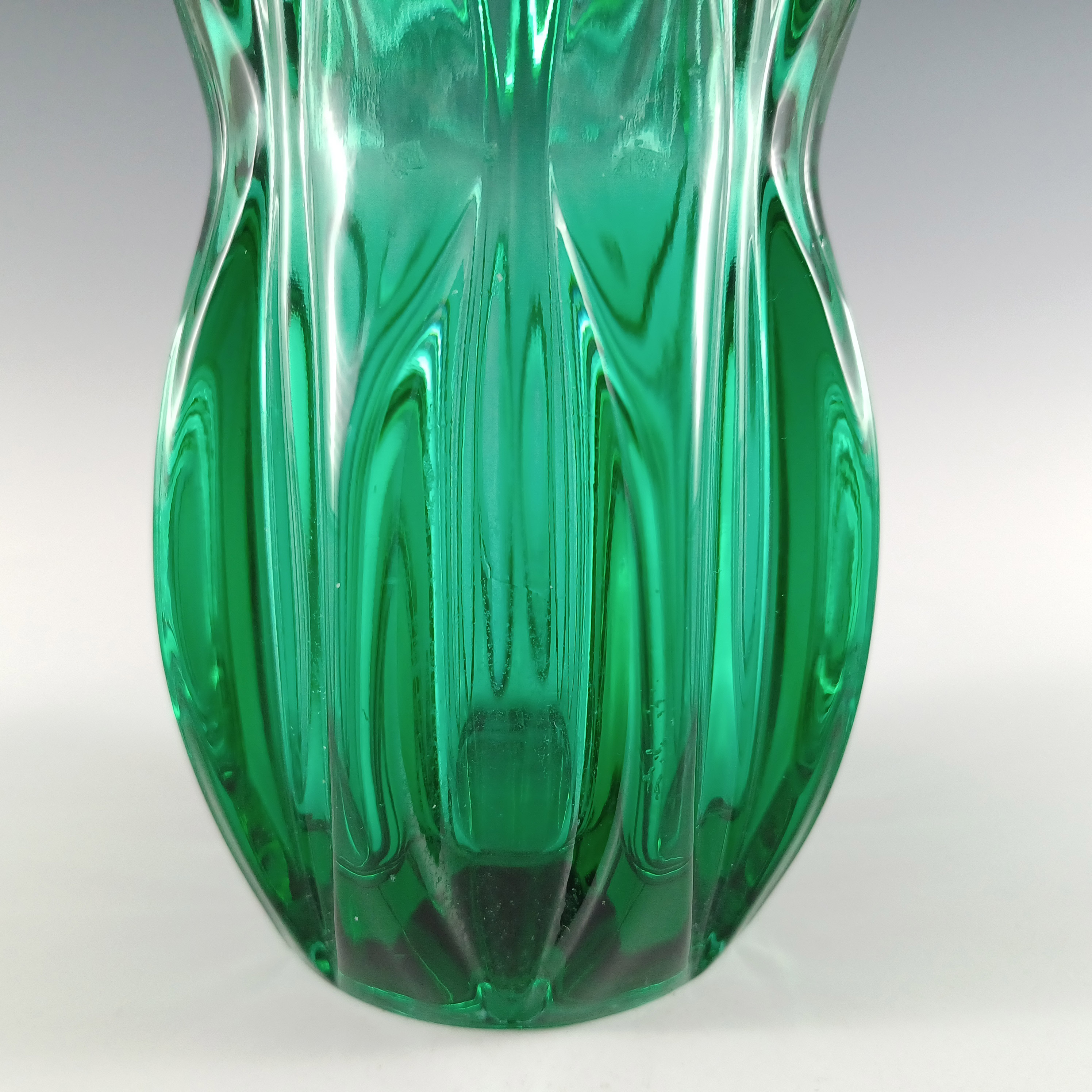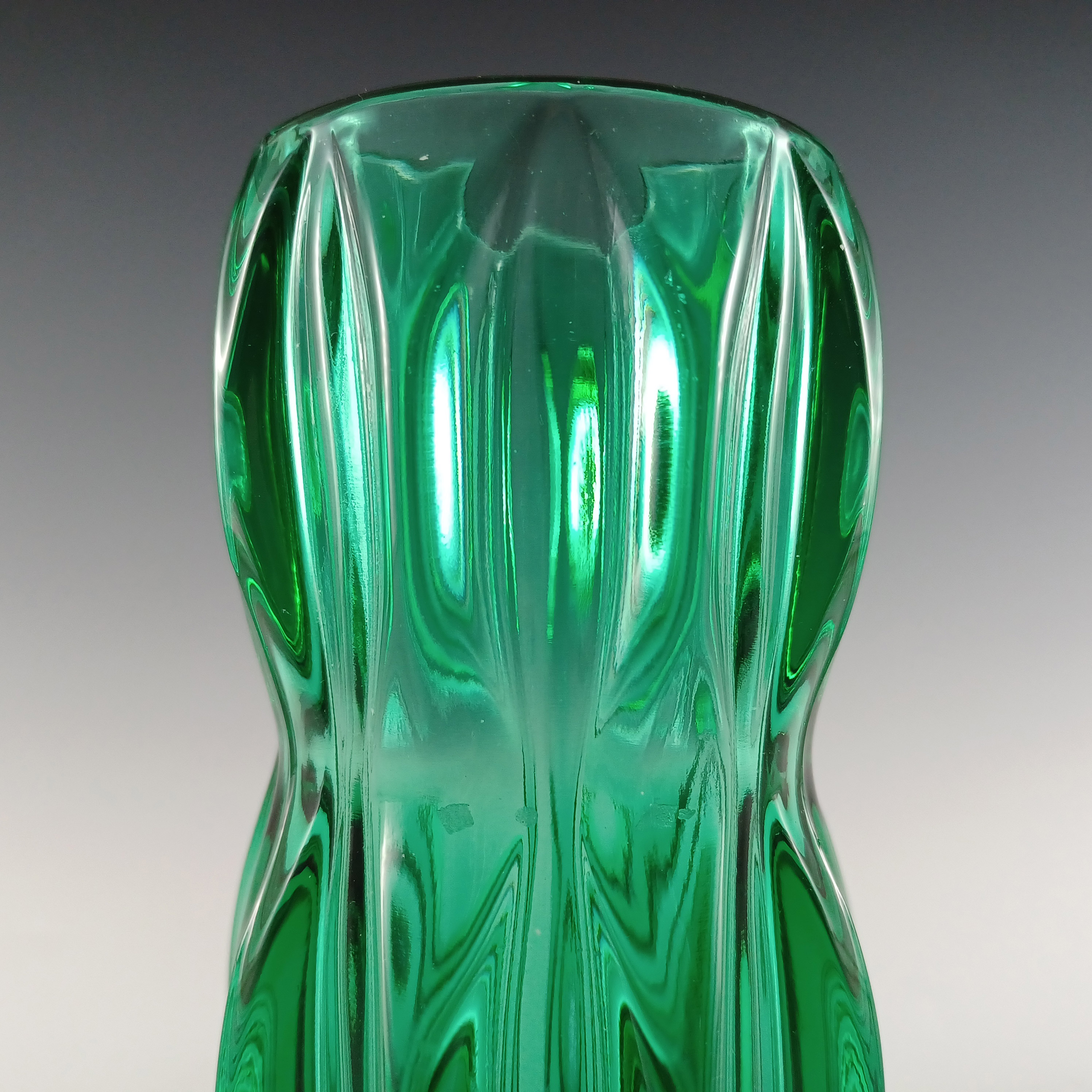 HUGE Stelvia Empoli Green Retro Cased Glass Vintage 'Tiki' Vase