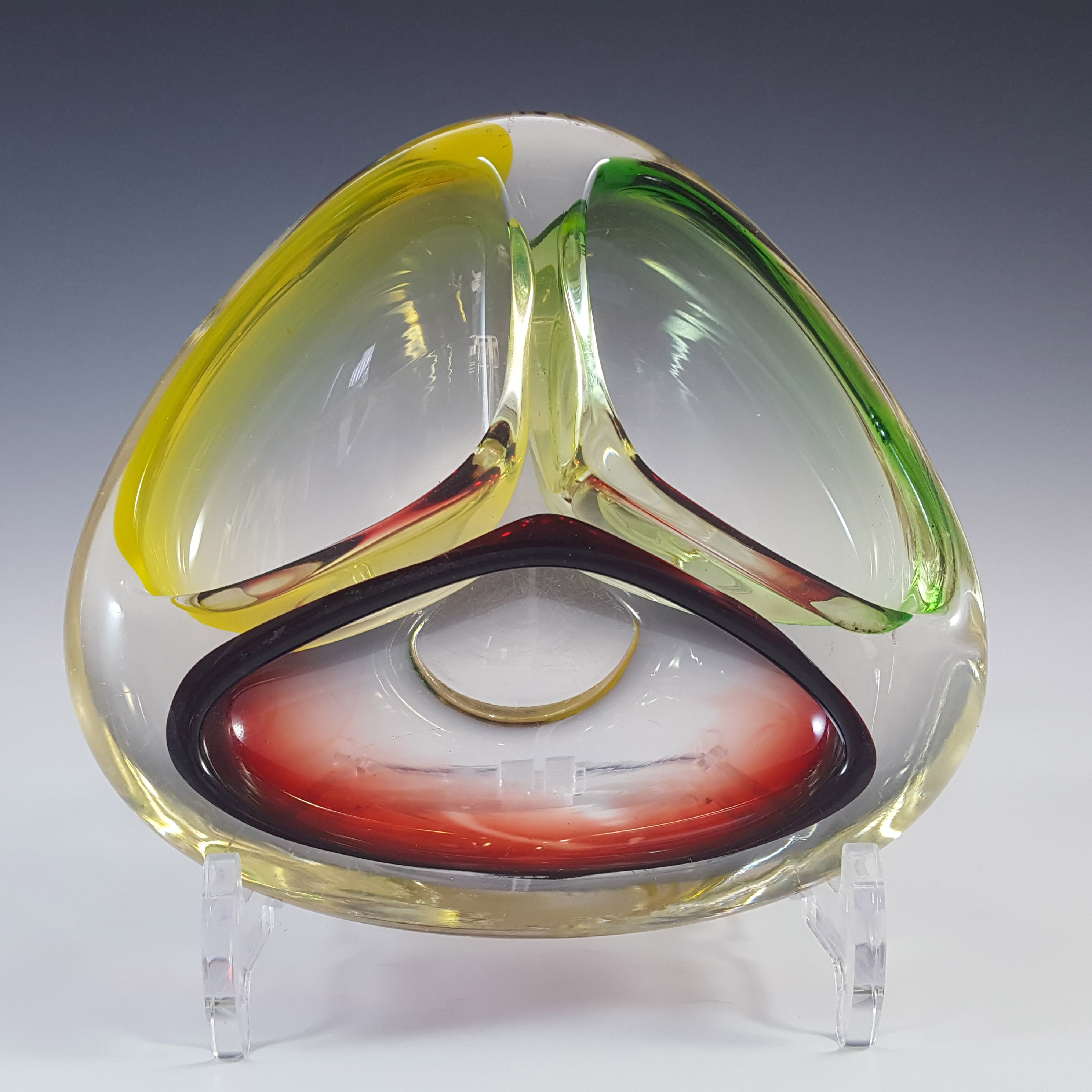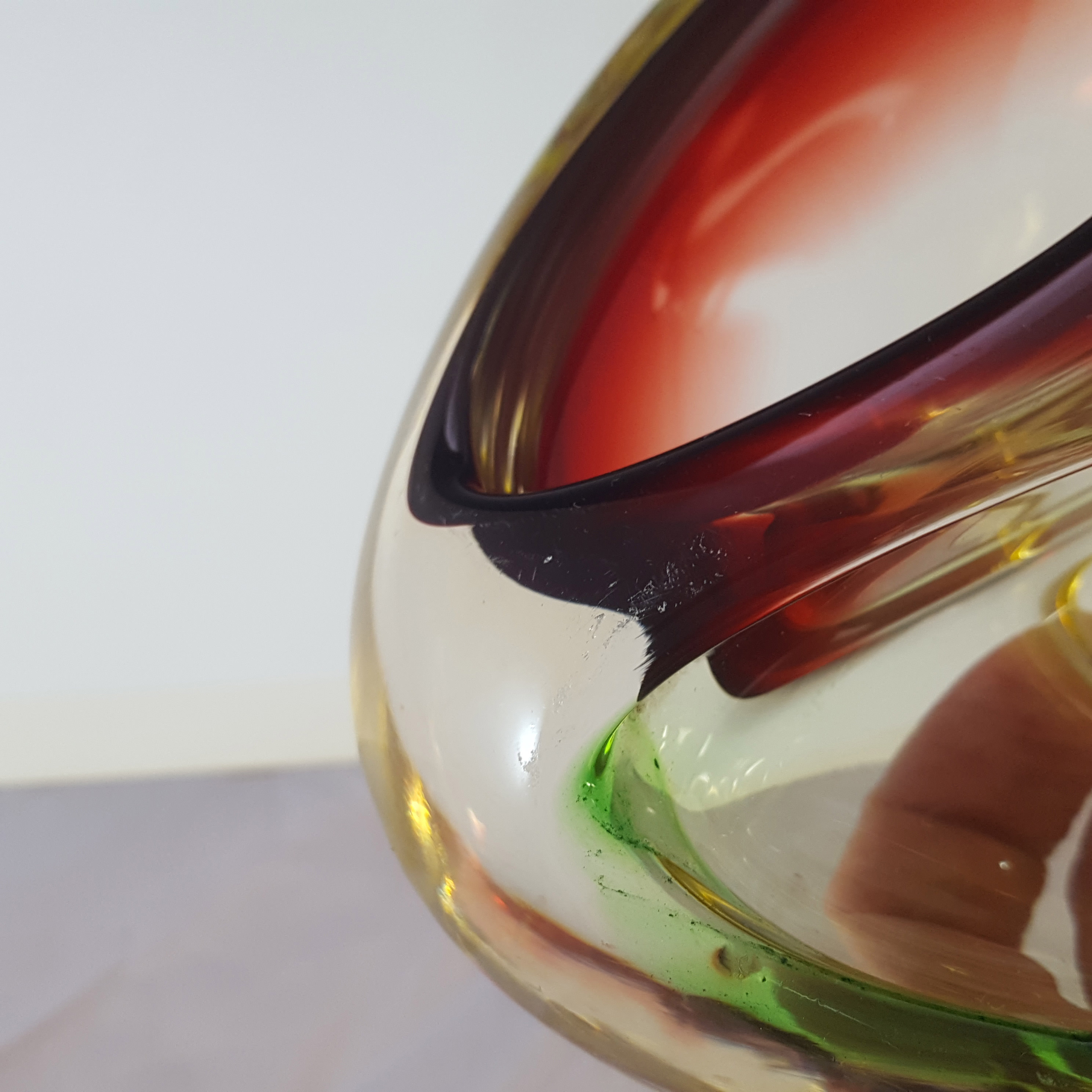 HUGE Stelvia Empoli Green Retro Cased Glass Vintage 'Tiki' Vase