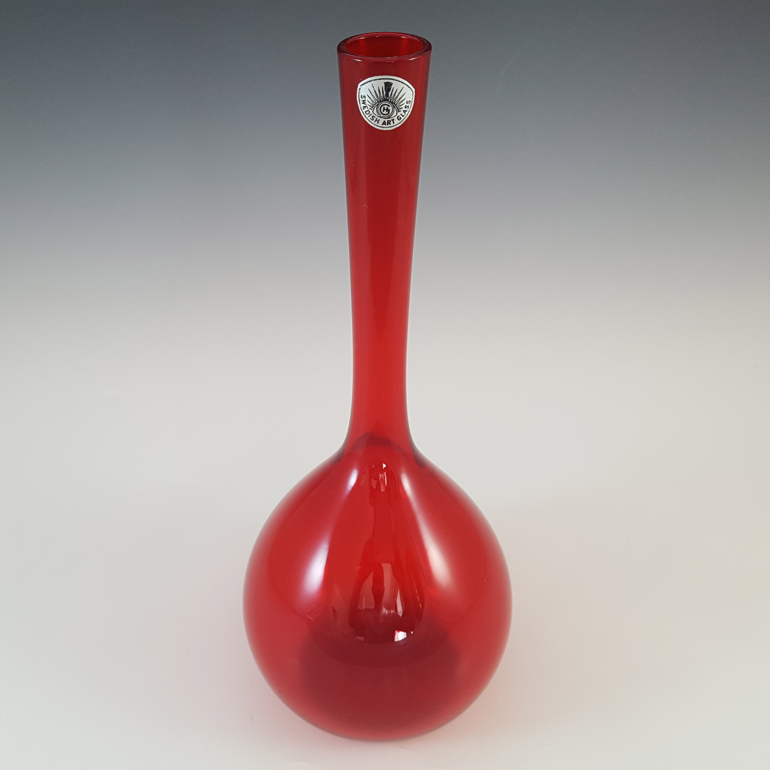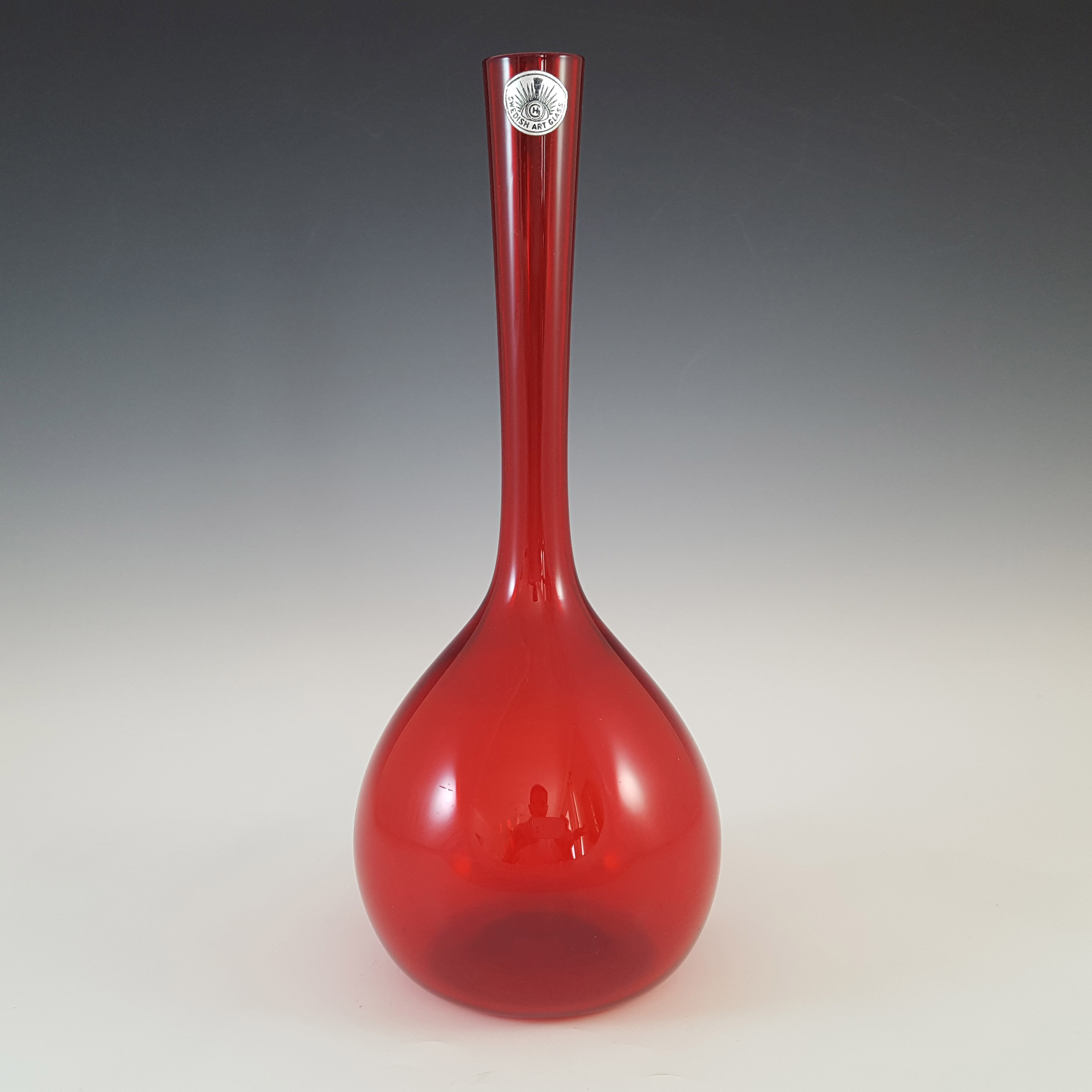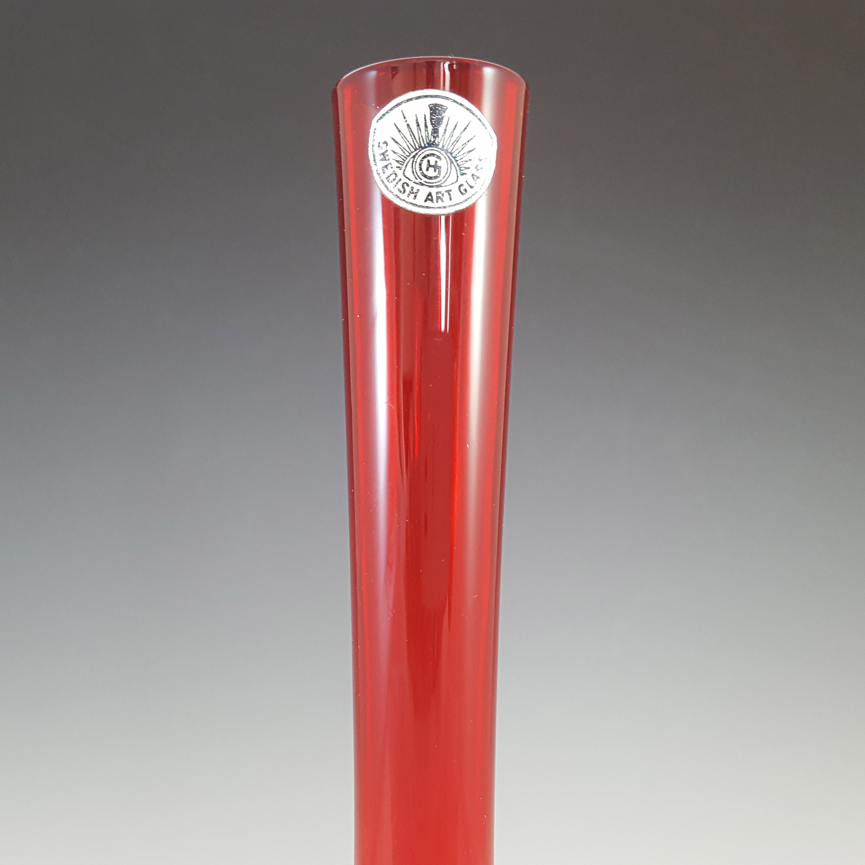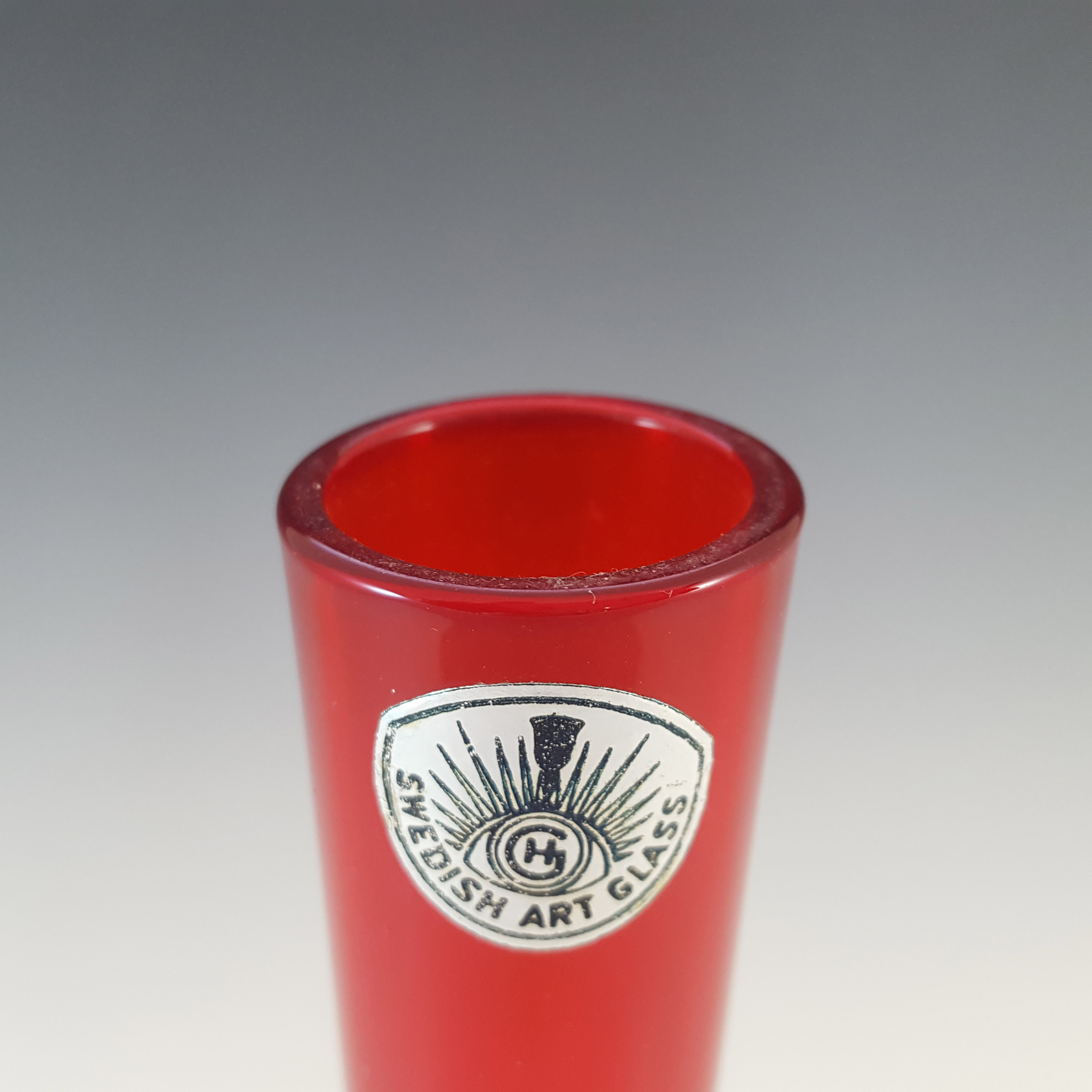 LABELLED Holmegaard Carnaby Red Cased Glass Vase by Per Lutken