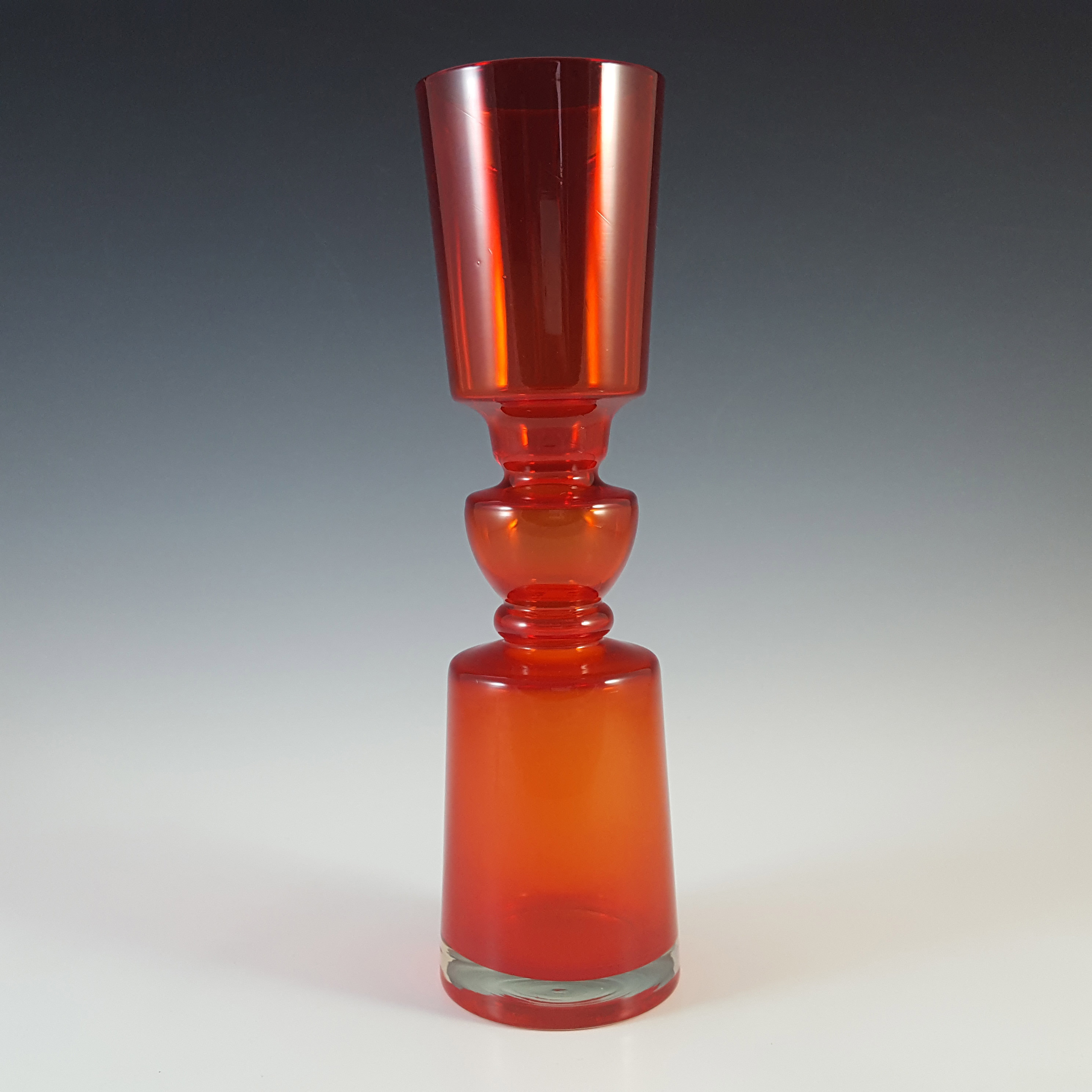 LABELLED Holmegaard Carnaby Red Cased Glass Vase by Per Lutken