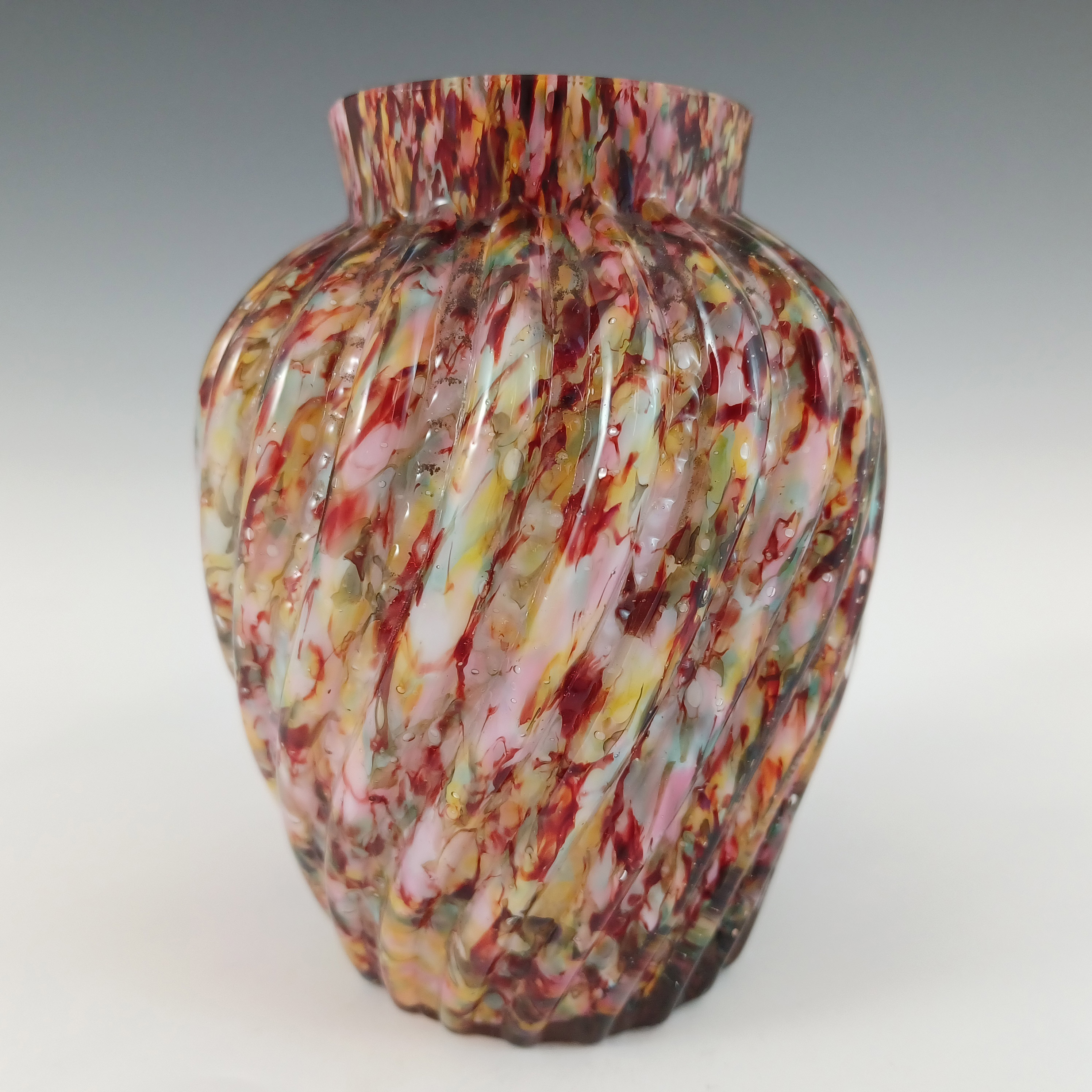 John Walsh Vaseline / Uranium Opalescent Glass 'Spiralling Dots' Vase