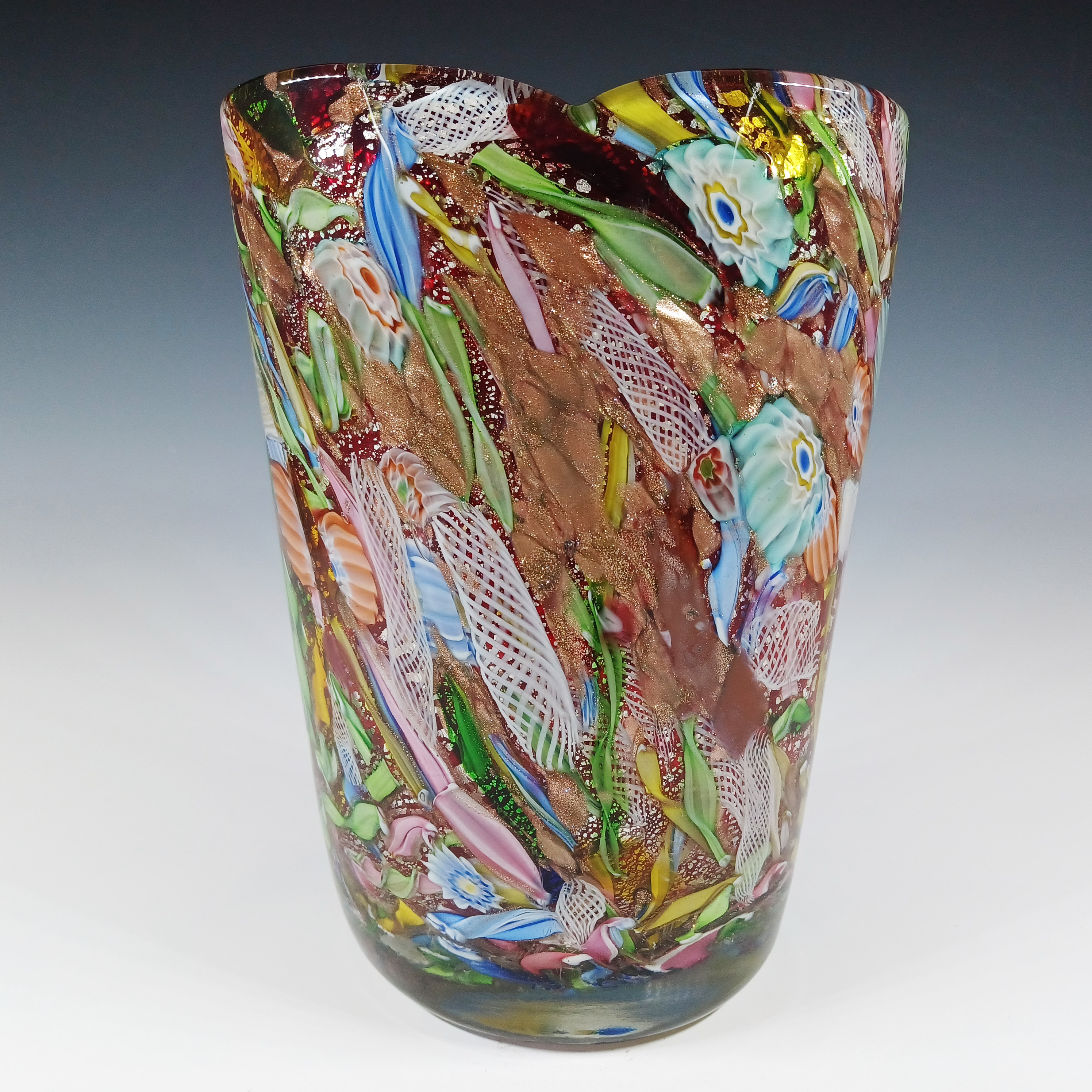 LARGE Barovier & Toso Murano Cordonato d'Oro Gold Leaf Vintage Glass Vase