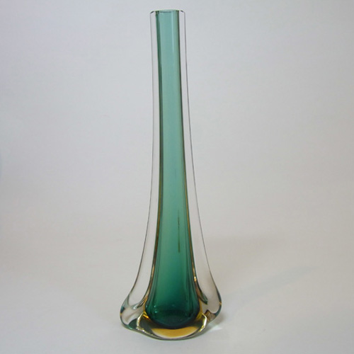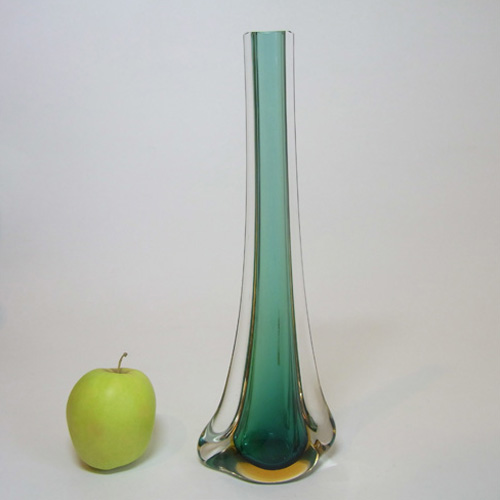 HUGE Stelvia Empoli Green Retro Cased Glass Vintage 'Tiki' Vase