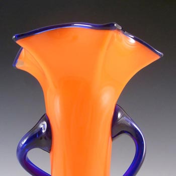 Czech / Bohemian Art Deco Orange & Blue Tango Glass Vase